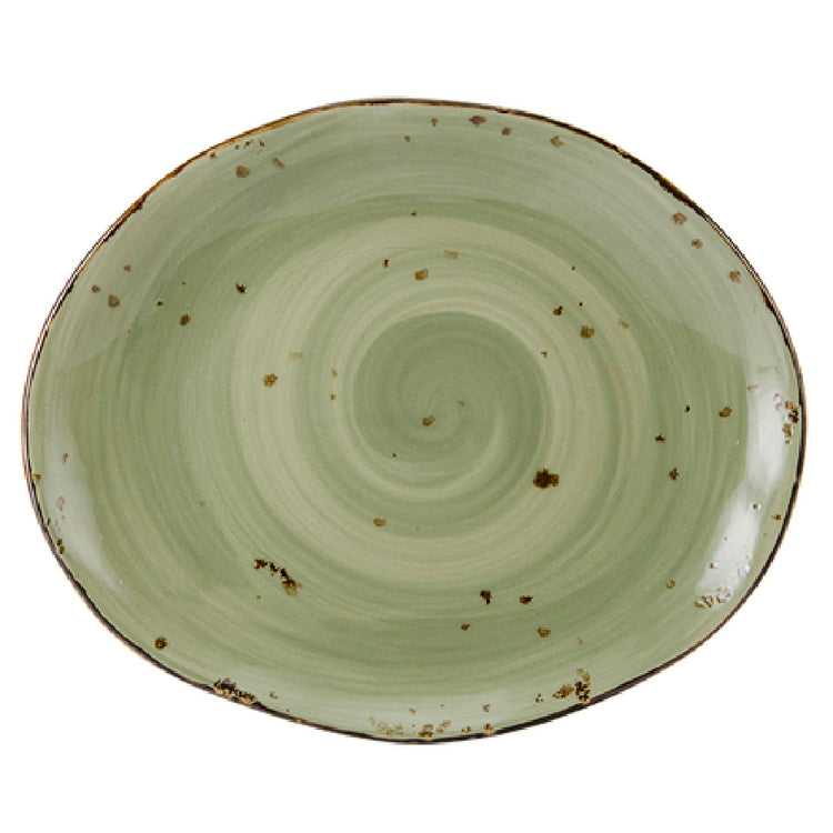 The Tuxton GGO-023 Platter 13-1/4" x 11" Free Form is a versatile serving solution designed to meet the demands of both commercial and domestic dining environments. This platter, crafted from fully vitrified porcelain, ensures durability and resistance to chipping, making it ideal for high-traffic settings such as restaurants, hotels, and catering services. Measuring 13-1/4 inches by 11 inches, the free form design adds a touch of elegance and uniqueness to table presentations, accommodating a variety of culinary displays. The platter is microwave and dishwasher safe, providing convenience and efficiency in fast-paced kitchen operations. Its oven-proof quality makes it suitable for keeping dishes warm before serving. The lead-free composition underscores a commitment to safety and environmental responsibility. Part of the TuxTrendz® Artisan Geode collection, the Olive color serves as an attractive backdrop to enhance the presentation of food. Packed by the dozen, this platter is a practical choice for establishments requiring consistent quality and aesthetic appeal. The Tuxton GGO-023 Platter is a preferred option for those in the hospitality industry seeking a product that combines functionality, durability, and style in one comprehensive package.