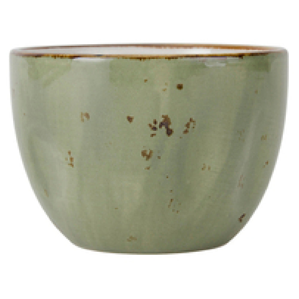 The Tuxton GGO-042 Bouillon 8 Oz. 3-3/4" X 2-5/8" bowl is a versatile addition to any food service operation, offering a perfect blend of functionality and aesthetic appeal. This round bouillon bowl features a capacity of 8 oz., making it ideal for serving soups, stews, and other liquid-based dishes. With dimensions of 3-3/4" in diameter and 2-5/8" in height, it is designed for efficient space utilization and adds a touch of elegance to your table setting. The Tuxton GGO-042 is microwave and dishwasher safe, allowing for easy use and maintenance in fast-paced environments. It is oven proof and fully vitrified, ensuring durability and resistance to thermal shock, making it suitable for diverse culinary applications. Crafted from lead-free porcelain, this bowl aligns with health standards and safety regulations. Part of the TuxTrendz® Artisan Geode collection, it showcases an Olive finish that enhances its visual appeal. Each case contains 2 dozen bowls, catering to the needs of both small and large-scale operations. This product is ideal for restaurants, hotels, and catering services seeking reliable and stylish dinnerware solutions that combine practicality with sophisticated design.