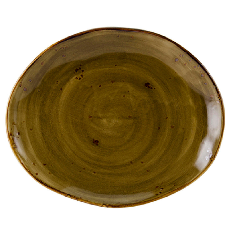 The Tuxton GGW-023 Platter 13-1/4" X 11" Free Form is an intricately crafted dining accessory that merges elegance with functionality. This platter is part of the TuxTrendz® Artisan Geode collection, offering a unique design that presents both visual appeal and utility. Designed with a free-form shape, it measures 13-1/4 inches by 11 inches, providing ample space for a diverse range of culinary presentations. Constructed from lead-free porcelain, the platter is fully vitrified, ensuring durability and resistance to chipping. Its robust build allows it to be both microwave and dishwasher safe, adding convenience for busy kitchens. Moreover, it is oven-proof, making it suitable for versatile cooking needs. The platter is finished in a rich Walnut color, adding a touch of sophistication to any dining setting. Ideal for both high-end restaurants and casual dining environments, this platter is sold in packs of one dozen, catering to commercial needs. The combination of its aesthetic appeal and practical features makes the Tuxton GGW-023 a valuable addition to any food service industry, offering both style and resilience for professional culinary applications.