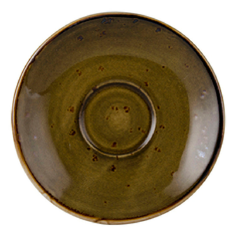 The Tuxton GGW-086 Espresso Saucer 5" Dia. Round is an expertly crafted piece of porcelain tableware that blends practicality with a touch of elegance, catering to a diverse range of needs in the food service industry. With a diameter of 5 inches, this round saucer is designed to complement and support espresso cups, enhancing any coffee presentation. The saucer is microwave and dishwasher safe, offering ease of use in fast-paced environments while ensuring durability and resistance to thermal shock. It is oven-proof, allowing for versatile serving options when warming beverages or small pastries is desired. Fully vitrified and lead-free, this porcelain saucer promises a safe and sanitary dining experience, meeting high standards for health and safety. The Tuxton GGW-086 is part of the TuxTrendz®© Artisan Geode collection, featuring a stylish Walnut finish that adds a sophisticated aesthetic to any table setting. Packed by 2 dozen per case, this product is ideal for restaurants, cafes, and hospitality venues requiring reliable, high-quality tableware in bulk quantities. Its robust build and timeless design make it a valuable addition to both traditional and contemporary dining environments, ensuring it meets the varied needs of the food service sector.