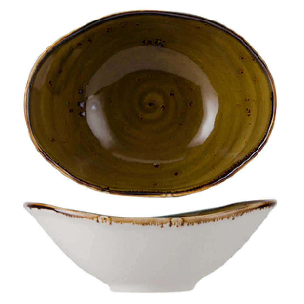 The Tuxton GGW-403 Capistrano Bowl is a versatile piece of porcelain dishware with a capacity of 20 oz., an ideal size for serving a variety of culinary creations. Measuring 8 inches by 6-1/4 inches with a height of 3 inches, this oval-shaped bowl is designed for both practicality and aesthetic appeal in professional dining settings. As part of the TuxTrendz® Artisan Geode collection, it features a Walnut finish that adds a touch of elegance to any table setting. The bowl is fully vitrified, ensuring its durability and resistance to chipping, which is essential for high-traffic environments like restaurants and catering services. It is microwave and dishwasher safe, offering convenience for reheating and cleaning, while its oven-proof nature expands its functionality in food preparation. The lead-free composition of the porcelain promotes safety and aligns with health regulations, making it a reliable choice for establishments prioritizing customer well-being. Packed by the dozen, the Tuxton GGW-403 Capistrano Bowl is an excellent investment for businesses seeking quality, durability, and style in their tabletop presentations, enhancing the dining experience across diverse market segments within the food service industry.