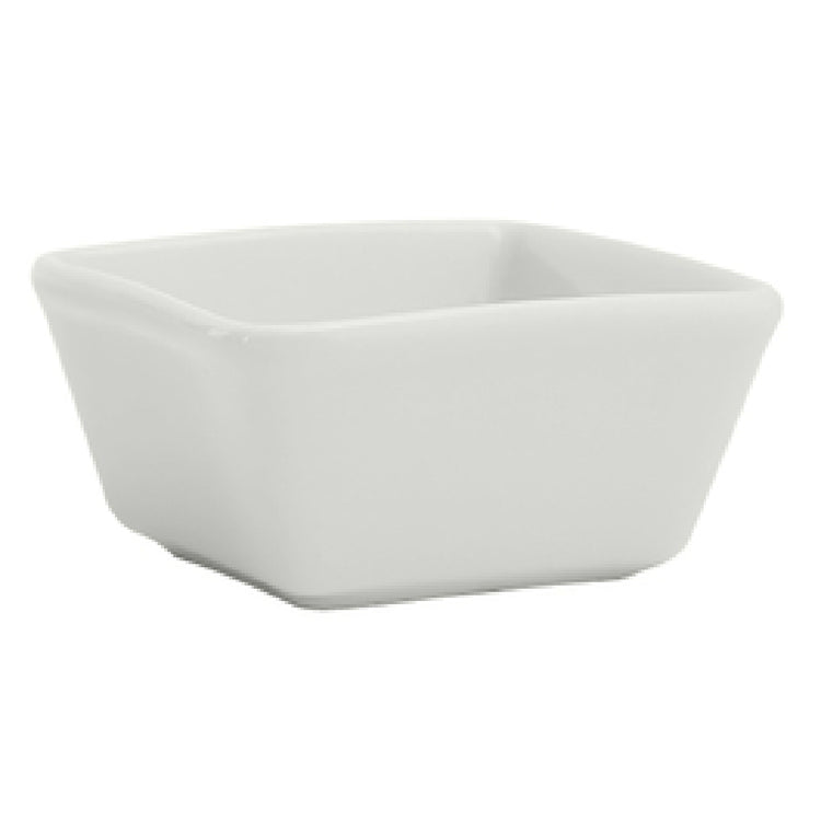 The Tuxton GSP-750 Ramekin 3 Oz. 3" X 3" 1-1/2"H is a high-quality square ramekin designed to meet the sophisticated needs of culinary professionals and home chefs alike. This product's technical prowess is evident in its fully vitrified construction, ensuring durability and resistance to water absorption. It is crafted from Santorini, Porcelain White, providing a classic and elegant appearance that complements any table setting. The ramekin is microwave and dishwasher safe, offering convenience for busy kitchens and seamless integration into daily use. Furthermore, its oven-proof capability makes it versatile for a variety of cooking techniques, enhancing its utility in both commercial and domestic environments. This lead-free ramekin is packed by 2 dozen per case, making it an efficient choice for establishments requiring bulk purchasing. With dimensions of 3" x 3" and a height of 1-1/2", it holds a volume of 3 ounces, ideal for serving small portions, condiments, or desserts. The Tuxton GSP-750 Ramekin is a valuable addition to any kitchen, offering reliability, safety, and style, making it a preferred choice for restaurants, catering services, and food enthusiasts who appreciate quality and functionality in their kitchenware.