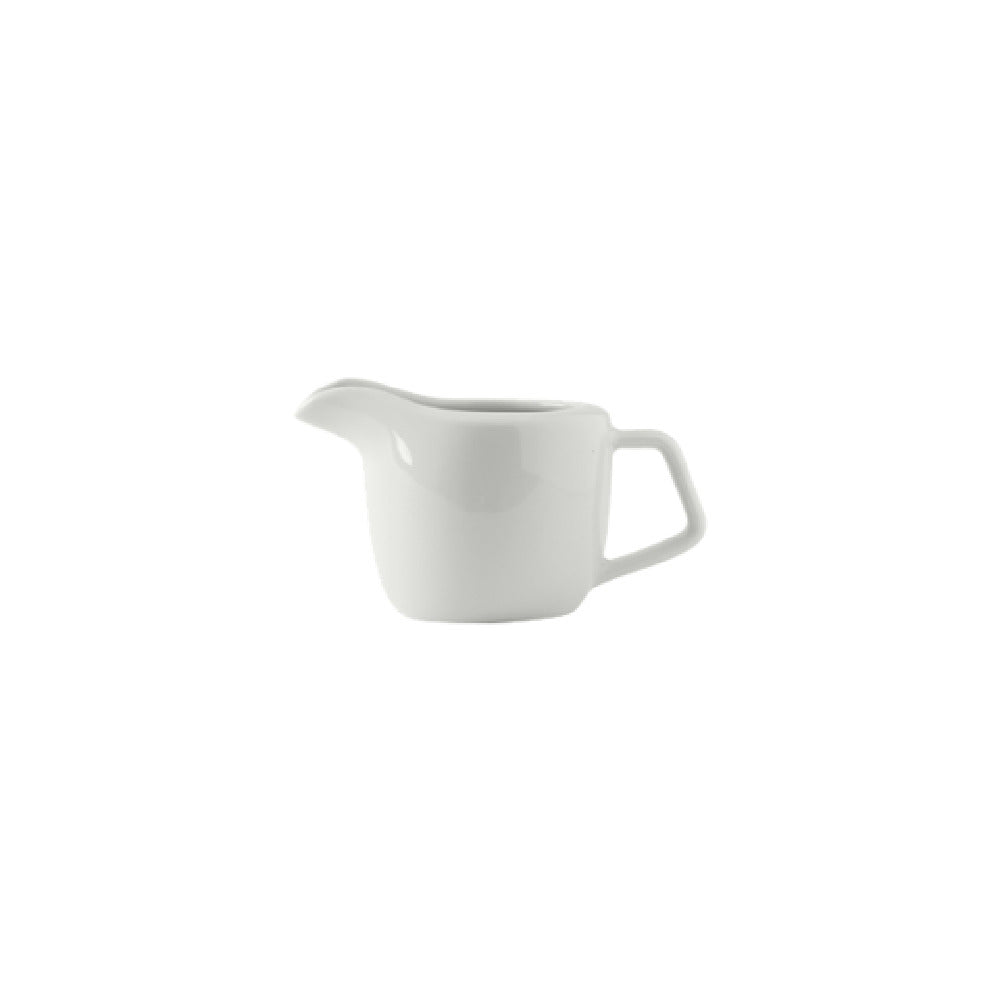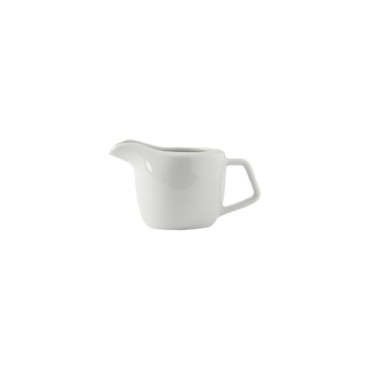 The Tuxton GZP-101 Creamer 6 Oz. 5" X 2-3/4"H is a versatile and durable option for various segments within the hospitality and food service industries. This creamer, featuring a 6-ounce capacity, is crafted with precision to fit seamlessly into different dining settings, whether casual or upscale. It measures 5 inches in length and 2-3/4 inches in height, which makes it a compact yet functional addition to any tableware collection. The creamer is designed with a handle, enhancing its usability and ease of pouring. Made from fully vitrified porcelain, it stands out for its robust construction, ensuring it is microwave and dishwasher safe, as well as oven-proof. This attribute makes it highly suitable for busy environments where resilience and ease of maintenance are crucial. The lead-free composition of the Tuxton GZP-101 Creamer assures users of its safety in serving consumables. As part of the TuxTrendz Specialty Items line, its Porcelain White finish offers a timeless and elegant appeal. Packed by the dozen, this creamer is an economical choice for bulk purchasing, catering to the needs of restaurants, hotels, and cafes seeking reliable and aesthetically pleasing serveware solutions.