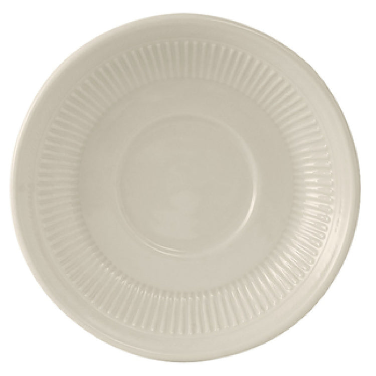 The Tuxton HEE-054 Saucer 5-1/2" Dia. Round is a meticulously crafted piece of ceramic ware, characterized by its embossed design and classic round shape. With a diameter of 5-1/2 inches, this saucer is the epitome of versatility and elegance, seamlessly fitting into the diverse needs of both commercial and domestic settings. Made from fully vitrified ceramic, it ensures not only durability but also resistance to water absorption, which is crucial for maintaining hygiene standards. The saucer is lead-free, making it a safe choice for all users. Its American White/Eggshell hue, known as Hampshire, adds a touch of sophistication, making it suitable for upscale dining environments. Designed for convenience, the Tuxton HEE-054 Saucer is microwave and dishwasher safe, allowing for efficient use and easy cleaning. Moreover, its oven-proof nature extends its functional use within culinary operations. Packed by 3 dozen per case, it provides an economical choice for bulk purchasing, ideal for hospitality businesses looking to supply their establishment with a reliable and high-quality product. Whether for a bustling restaurant or a cozy home kitchen, the Tuxton HEE-054 Saucer offers a blend of practicality and aesthetic appeal.
