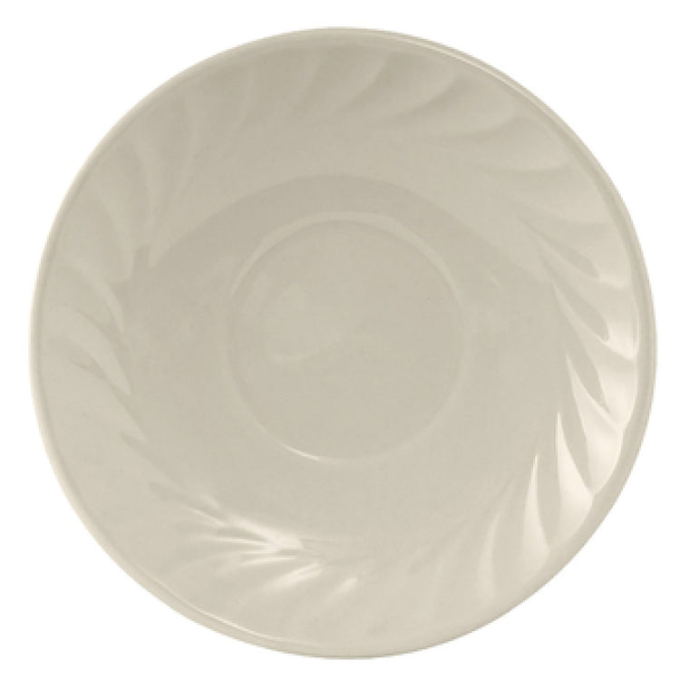 The Tuxton MEE-056 Saucer 5-3/4" Dia. Round is a versatile piece designed to meet the needs of various segments within the foodservice and healthcare industries. With a diameter of 5-3/4 inches, this round saucer features an embossed design that adds a touch of elegance to any table setting. Its construction from fully vitrified ceramic ensures durability and strength, making it suitable for heavy use. The saucer is lead-free, offering a safe choice for serving food and drinks. It is microwave and dishwasher safe, providing convenience in fast-paced environments such as cafes, restaurants, and healthcare facilities. Additionally, the saucer is oven-proof, allowing for versatile serving options. The American White/Eggshell color offers a classic appearance that complements any decor. Packed by 3 dozen per case, it is an economical choice for large-scale operations. The inclusion of TuxCare® in its construction emphasizes quality and reliability, while its Meridian pattern adds a subtle sophistication. Ideal for professional settings, this saucer combines practicality with aesthetic appeal, making it a valuable addition to any establishment looking to elevate its service quality with dependable, stylish tableware.