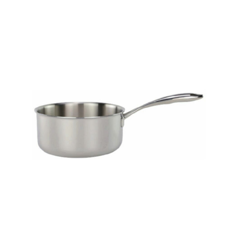 The Tuxton RTSH-1281 TUXCLAD Sauce Pan is a versatile kitchen essential with a capacity of 4 quarts, making it a perfect choice for various cooking needs across different market segments. With dimensions of 8.6875 inches in diameter and 4.0 inches in height, this sauce pan is designed for efficiency and durability. Constructed with a triply design, it ensures even heat distribution, enhancing cooking performance. The ergonomic hollow stainless steel handle provides comfort and ease of use, while its rivetless design contributes to easy cleaning and a sleek appearance. This sauce pan is NSF certified, ensuring it meets the industry standards for public health and safety. Moreover, it is compatible with a broad range of cooktops, including induction, ceramic, electric, gas, and iron, as well as being oven safe. This makes it suitable for professional kitchens and home use alike. The Tuxton RTSH-1281 TUXCLAD Sauce Pan is crafted with the highest standards of food safety in mind, underscoring Tuxton’s commitment to quality and functionality. For warranty information, refer to Tuxton.com. This item is sold individually, providing flexibility in purchase for both individual users and bulk buyers.