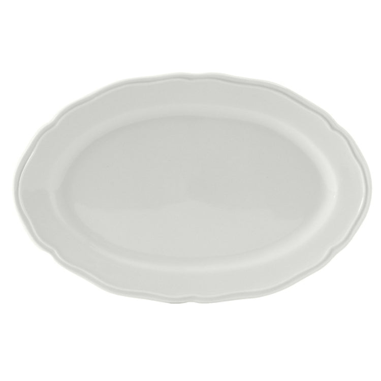 The Tuxton SCH-124 Platter 12-1/2" X 8-7/8" Oval stands out with its distinctive scalloped edge design and is crafted from fully vitrified porcelain, ensuring a durable and lead-free dining solution. This product is part of the TuxTrendz® collection, specifically the Charleston series, presented in an elegant Porcelain White. Its dimensions of 12-1/2" by 8-7/8" make it a versatile choice for various serving needs, accommodating different culinary presentations with ease. The platter’s oven-proof capability allows it to withstand high temperatures, while being microwave and dishwasher safe adds to its convenience for everyday use in professional settings. Whether used in upscale restaurants or at catered events, its sturdy construction supports a wide range of applications in the hospitality industry. Notably, the platter is packed by the dozen, making it a practical choice for large-scale operations seeking uniformity and high-quality tableware. The combination of aesthetic appeal and practical features makes the Tuxton SCH-124 Platter an excellent choice for establishments that prioritize both style and functionality in their table settings.