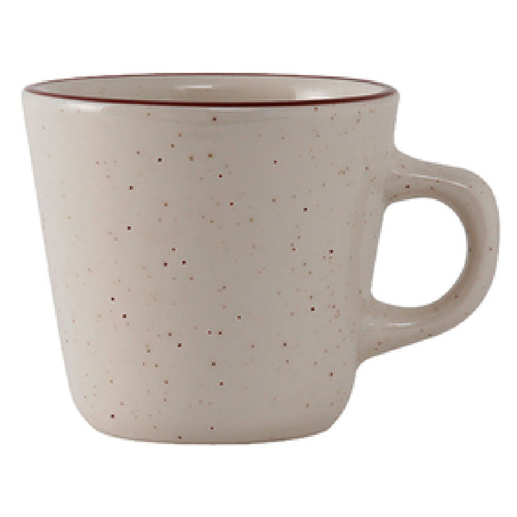 The Tuxton TBS-001 Cup 7 Oz. 3-1/4" Dia. X 3"H is an expertly crafted ceramic cup designed for both durability and elegance, making it a versatile addition to any dining setting. With a capacity of 7 ounces and dimensions measuring 3-1/4 inches in diameter and 3 inches in height, this cup fits seamlessly within various hospitality environments. It features a narrow rim, adding a touch of sophistication while ensuring ease of use. The cup is microwave and dishwasher safe, reflecting its practical design for everyday convenience. Furthermore, it is oven proof and fully vitrified, ensuring it withstands high temperatures while maintaining its integrity and appearance. The lead-free composition of the cup highlights Tuxton's commitment to safety and health standards, aligning well with the Healthcare industry's needs. Its American White/Eggshell finish with a Brown Speckle adds a timeless aesthetic, suitable for both casual and formal settings. The TuxCare® guarantee underlines Tuxton's dedication to quality and customer satisfaction. The cups are packed by 3 dozen per case, offering a convenient bulk option for large-scale operations, including healthcare facilities and hospitality venues. This combination of style, functionality, and safety makes the Tuxton TBS-001 Cup an ideal choice for diverse market segments.