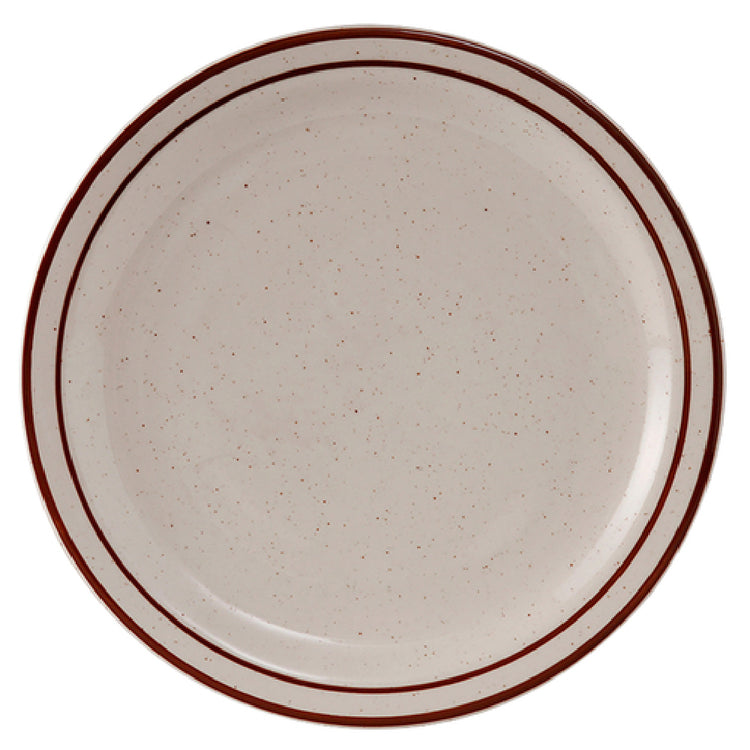 Tuxton TBS-016 Plate 10-1/2" Dia. Round represents a versatile dining solution for various segments of the foodservice industry with its meticulous design and durable construction. This plate, featuring a 10-1/2 inch diameter and a round shape with a narrow rim, is ideally sized for serving an array of dishes. Its fully vitrified ceramic build ensures enhanced durability and resistance to moisture absorption, making it a reliable choice for high-demand environments. The plate's microwave and dishwasher-safe properties, along with its oven-proof nature, offer unparalleled convenience for kitchens seeking efficiency in service and cleanup. Further accentuating its appeal is its lead-free composition, ensuring safety and compliance with health standards. The aesthetic appeal of Tuxton TBS-016 is underscored by its Bahamas, American White/Eggshell color with a brown speckle pattern, providing a subtle yet distinctive appearance that complements various dining settings. Packed by the dozen, this plate offers an economical yet high-quality solution for establishments ranging from casual dining venues to formal restaurants, catering services, and beyond, ensuring both practicality and elegance in table presentation.