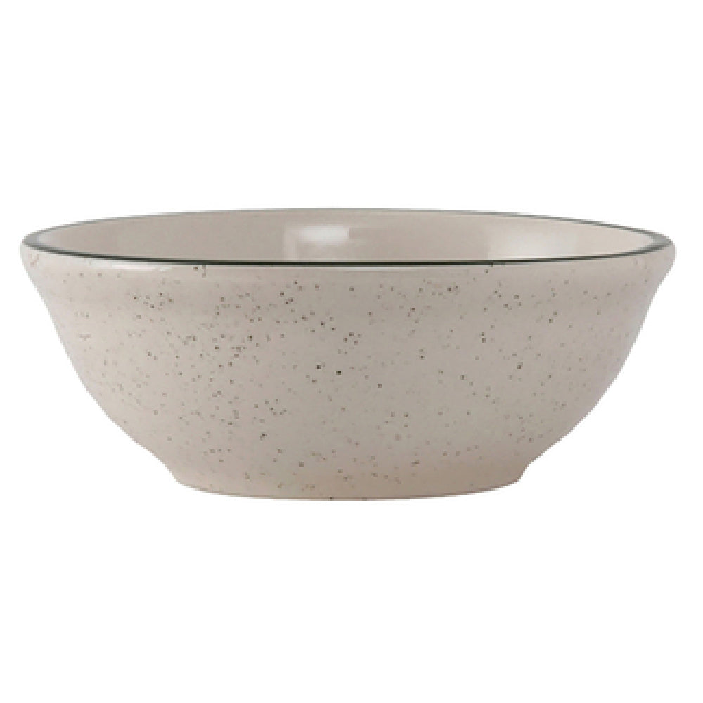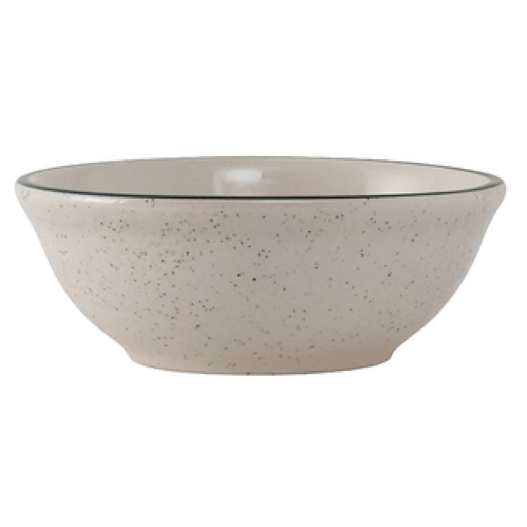 The Tuxton TES-015 Nappie is a versatile and durable dining essential with a capacity of 13 oz. and a diameter of 5-5/8 inches. This round nappie features a narrow rim design, making it an excellent choice for those in the food service industry who value both style and functionality. Crafted from fully vitrified ceramic, this nappie is lead-free, ensuring safety for all users. Its robust construction allows it to be microwave and dishwasher safe, as well as oven proof, providing convenience and flexibility in various culinary applications. The distinctive color palette of American White/Eggshell with Green Speckle adds an elegant touch to any table setting, enhancing the dining experience. The Tuxton TES-015 Nappie is packed by three dozen per case, catering to the needs of large-scale operations such as restaurants, catering services, and hospitality venues. With its combination of aesthetic appeal and practical features, the Tuxton TES-015 Nappie is an excellent choice for professionals seeking high-quality dinnerware that meets the rigorous demands of the food service industry.
