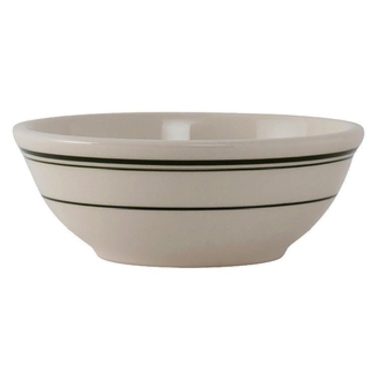 The Tuxton TGB-015 Nappie 13 Oz. 5-5/8" Dia. is a versatile piece of dinnerware that seamlessly combines functionality with style, making it an excellent choice for various segment markets within the food service industry. This round nappie boasts a capacity of 13 ounces and a diameter of 5-5/8", making it ideal for serving soups, cereals, and side dishes. Its wide rim and rolled edge design not only enhance its aesthetic appeal but also increase its durability, ensuring it can withstand the demands of a busy kitchen. Constructed from fully vitrified ceramic, this nappie is both microwave and dishwasher safe, providing convenience for fast-paced dining environments. Additionally, its oven proof nature expands its utility, allowing chefs to serve dishes that require reheating or direct-from-oven presentation. The lead-free composition prioritizes safety, making it a reliable choice for establishments focused on health standards. Featuring an American White/Eggshell finish with a Green Bay band, it offers a neutral yet elegant look that complements various table settings. Packed by three dozen per case, the Tuxton TGB-015 Nappie is an efficient and practical addition to any restaurant, catering service, or hospitality venue seeking durable and stylish dinnerware solutions.