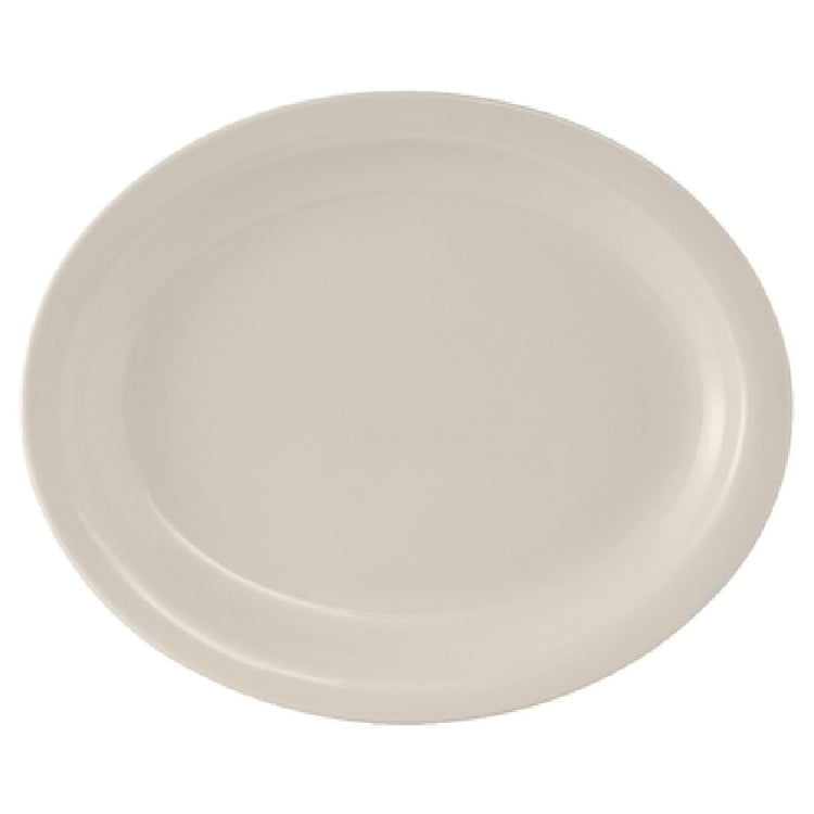 The Tuxton TNR-040 Platter 7-1/8" X 5-3/4" Oval is a versatile serving piece ideal for diverse dining environments. This platter, with its dimensions of 7-1/8 inches by 5-3/4 inches, features an elegant oval shape complemented by a narrow rim design. Crafted from high-quality, fully vitrified ceramic, it ensures durability and is resistant to chipping. The American White/Eggshell finish adds a touch of sophistication, making it suitable for both casual and formal settings. Notably, this platter is lead-free, prioritizing the safety and health of consumers. It is designed to withstand the rigors of commercial use, being both microwave and dishwasher safe, as well as oven proof, supporting high-temperature applications. The Tuxton TNR-040 is produced in Nevada and is packed in cases of three dozen, providing an ample supply for large-scale food service operations. This product is tailored for restaurants, hotels, and catering services seeking reliable, aesthetically pleasing dinnerware that does not compromise on functionality and safety standards.