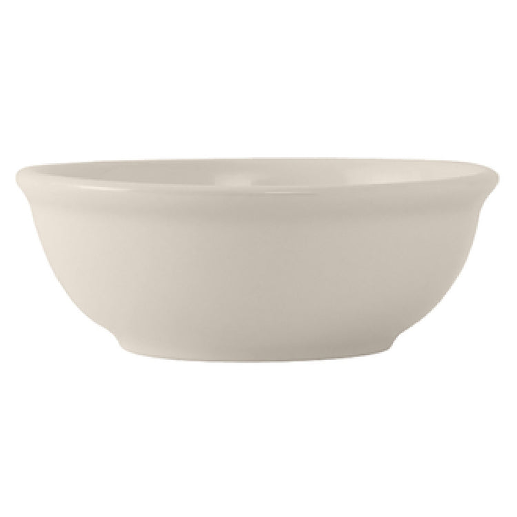 Tuxton TRE-018 Nappie 15 Oz. 5-7/8" Dia. is a versatile ceramic piece designed for both professional and home use, offering a perfect blend of durability and functionality. Measuring 5-7/8 inches in diameter, this round nappie has a substantial capacity of 15 ounces, making it ideal for serving a variety of dishes, from soups to cereals. The product is crafted from fully vitrified ceramic, ensuring a robust, non-porous surface that is designed to withstand the demands of high-volume settings. With its oven-proof construction, the Tuxton TRE-018 can comfortably transition from the oven to the table, making it suitable for baked dishes. The American White/Eggshell color of the Reno/Nevada design seamlessly blends with diverse table settings, adding a touch of elegance. Additionally, the nappie is both microwave and dishwasher safe, offering convenience for fast-paced environments. This product is packaged by 3 dozen per case, supporting bulk purchasing for restaurant or institutional use. The Tuxton TRE-018 Nappie is a practical choice for various market segments, including hospitality and catering industries, where durability and ease of maintenance are essential. Its thoughtful design and reliable performance make it a valuable addition to any culinary establishment.