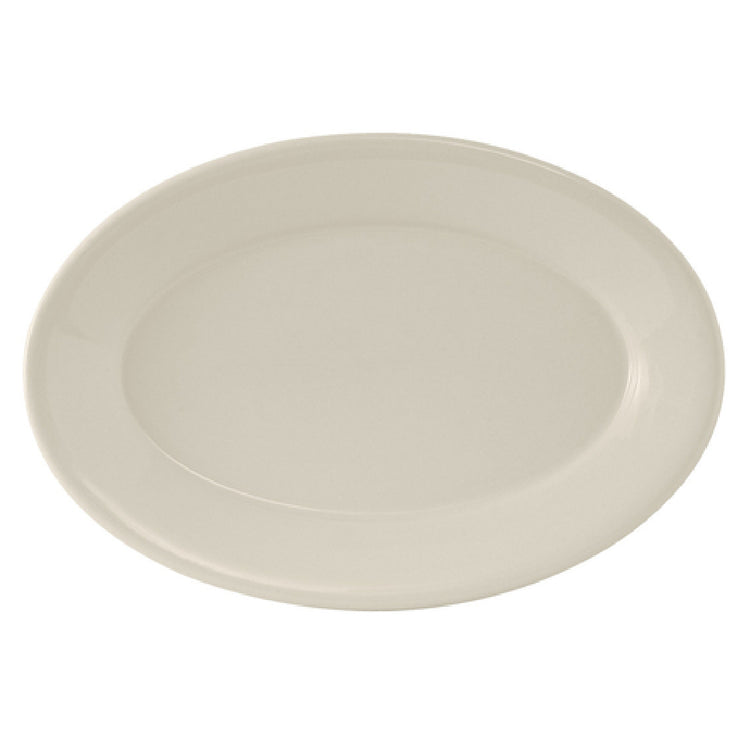 The Tuxton TRE-034 Platter, measuring 9-3/8" x 6-1/2", is an oval-shaped ceramic dish designed for diverse food service environments. It features a wide rim and rolled edge, enhancing its durability and aesthetic appeal, which is essential for both casual dining settings and more upscale occasions. As a fully vitrified product, this platter is not only microwave and dishwasher safe but also oven proof, ensuring versatility and resilience in various culinary applications. This lead-free ceramic platter comes in an elegant American White/Eggshell hue, adding a touch of sophistication to any table setting. The Tuxton TRE-034 Platter is an excellent choice for restaurants, catering services, and hospitality businesses that prioritize quality and safety in their dinnerware. Packed by 2 dozen per case, it is suitable for high-volume use while maintaining high standards of hygiene and durability. Its specifications highlight a commitment to providing a reliable and functional serving solution in the food service industry.