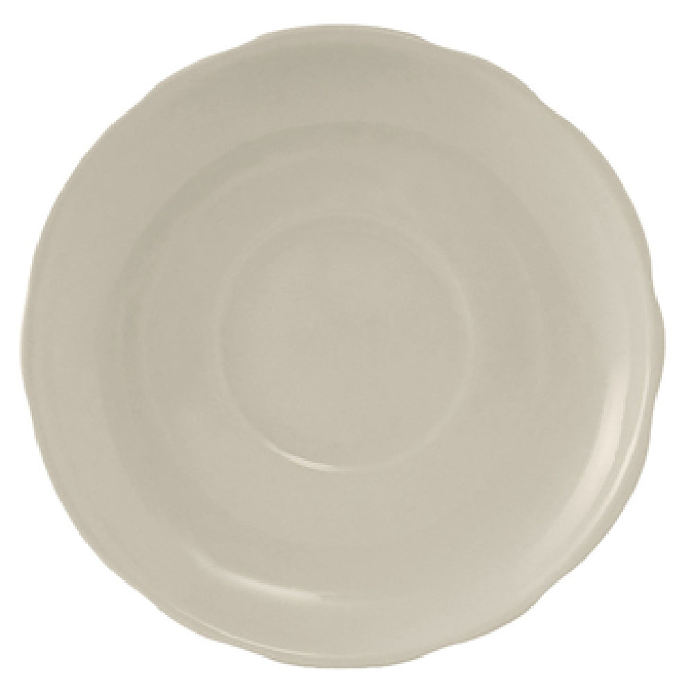 The Tuxton TSC-002 Saucer 5-1/2" Dia. Round is a meticulously crafted piece of ceramic designed to meet the demanding needs of the food service industry. This saucer boasts a 5-1/2 inch diameter and a round, coupe style with an elegant scalloped edge, making it visually appealing for upscale dining settings. Its versatility is highlighted by its capacity to withstand microwave and dishwasher use, as well as being oven proof, providing seamless functionality in professional kitchens. The saucer is fully vitrified, ensuring exceptional strength and durability, reducing the risk of breakage and chipping in high-volume environments. It is lead-free, aligning with safety standards and providing peace of mind for health-conscious establishments. Available in a Shell, American White/Eggshell color, it complements various dinnerware collections, enhancing table presentations without overshadowing the main dish. Packed by 3 dozen per case, it offers an efficient stocking solution for restaurants, hotels, and catering services. The Tuxton TSC-002 Saucer is an exemplary choice for industry professionals seeking a reliable, aesthetically pleasing, and functional dishware option that supports the daily rigors of food service operations while maintaining a sophisticated appearance.