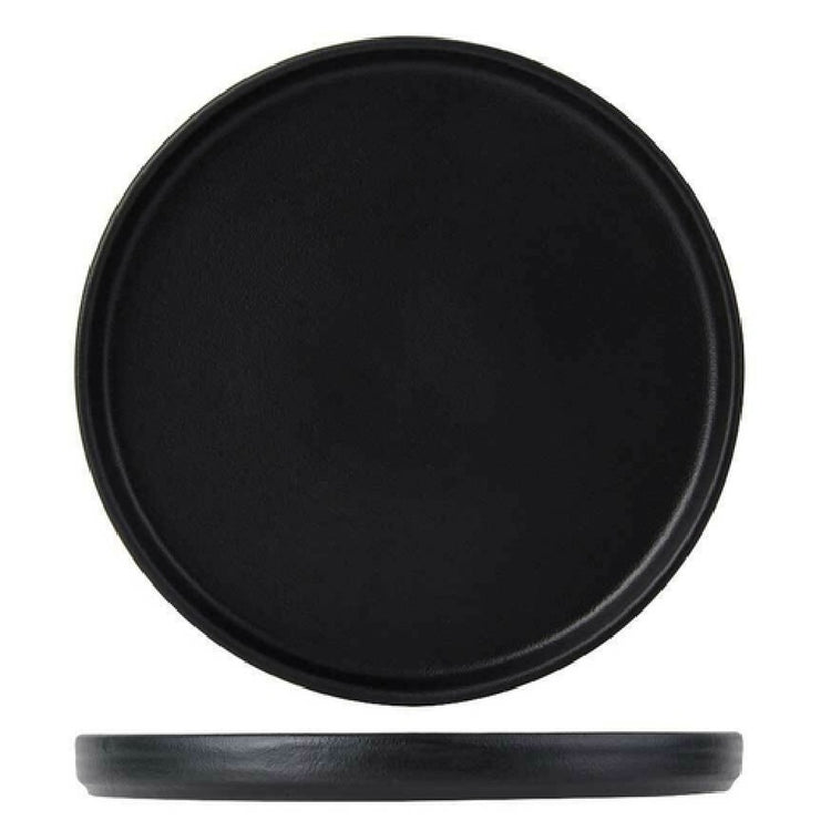 The Tuxton VBAS082 Plate 8-1/4" Dia. X 3/4"H Round is a meticulously crafted dining essential designed for versatility and durability. With its precise dimensions of 8-1/4 inches in diameter and 3/4 inch in height, this round plate features a straight side that adds a modern touch to its elegant design. Engineered for practicality, it is microwave and dishwasher safe, making it an ideal choice for both commercial and home dining settings. Further enhancing its functionality, the plate is oven proof, allowing it to withstand high temperatures without compromising its structural integrity. Crafted from fully vitrified, lead-free porcelain, it embodies a commitment to safety and sustainability. The plate is part of the TuxTrendz® Zion collection, renowned for its matte black finish that provides a striking, contemporary aesthetic. Packed by two dozen per case, it caters efficiently to restaurants, hotels, and catering services that demand both style and substance in their serveware. The matte black color not only elevates food presentation but also complements a variety of table settings, making it an adaptable addition to any dining experience. This plate is a testament to Tuxton's dedication to quality and innovation in the field of premium tableware.
