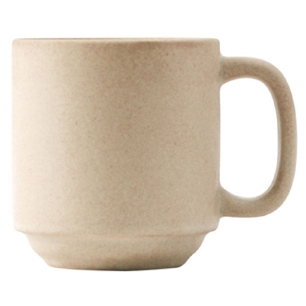 The Tuxton VYM-110J Yukon Mug is a versatile and durable beverage container with an 11 oz. capacity, measuring 4-3/4" in length, 3-3/8" in width, and 3-5/8" in height. This mug features a convenient handle and is designed for practicality, being both stackable and microwave safe. It is also dishwasher safe, which enhances its utility in busy kitchen environments. Constructed from fully vitrified porcelain, this mug is lead-free, ensuring safety and peace of mind for users. Additionally, its oven-proof capabilities make it suitable for a variety of culinary applications. The Tuxton VYM-110J belongs to the TuxTrendz® collection and is available in a stylish Zion matte beige finish, making it a visually appealing choice for both personal and professional settings. Its packaging, supplied by 2 dozen per case, caters to large-scale hospitality and foodservice operations, which require reliable and high-quality dining ware. This mug's thoughtful design and quality construction make it a suitable choice for diverse market segments, including restaurants, cafes, and catering services, seeking dependable and aesthetically pleasing tableware solutions.