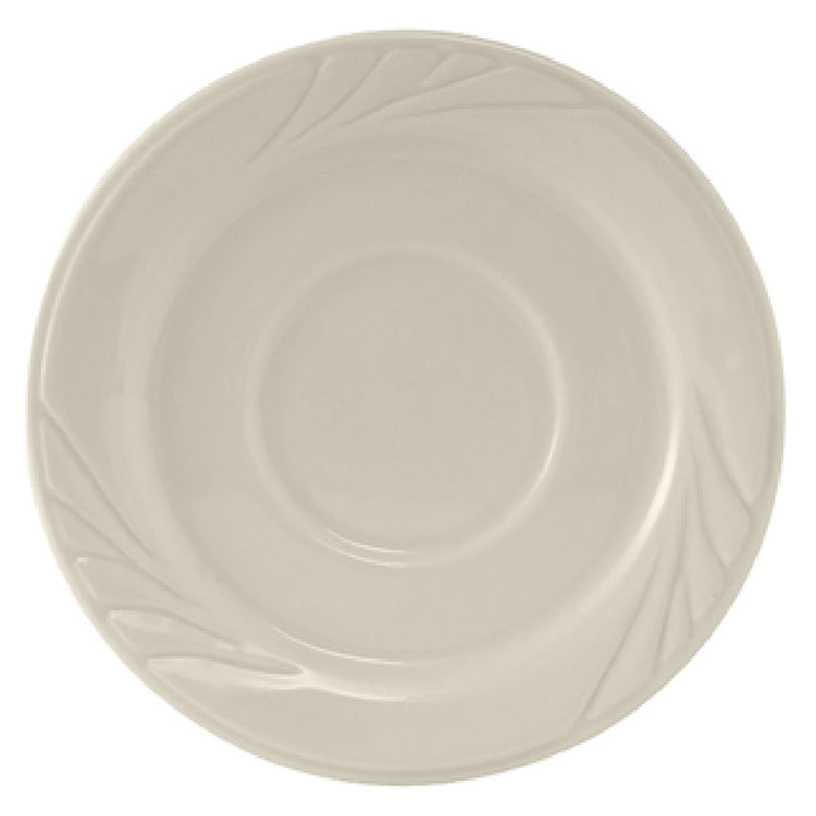 The Tuxton YEE-054 Saucer 5-1/2" Dia. Round is a meticulously crafted piece of ceramic dinnerware that combines functionality with elegance, making it an ideal choice for a variety of sectors, including healthcare and hospitality. Measuring 5-1/2 inches in diameter, this round saucer features an embossed design that adds a touch of sophistication to any table setting. Its fully vitrified ceramic construction ensures durability and resistance to chipping, while being lead-free guarantees safety for all users. The Tuxton YEE-054 is both microwave and dishwasher safe, offering convenience in fast-paced environments where efficiency is paramount. Additionally, its oven-proof nature expands its versatility, allowing it to be used for warm dishes or desserts. The saucer is part of the TuxCare® collection, known for its quality and reliability in high-demand settings. Available in American White/Eggshell, this saucer complements a wide range of tableware aesthetics. Packed by 3 dozen per case, it is a practical solution for establishments requiring bulk orders, such as large dining facilities or healthcare institutions. The Tuxton YEE-054 Saucer is a testament to quality craftsmanship and is designed to meet the rigorous demands of professional kitchens and dining services.