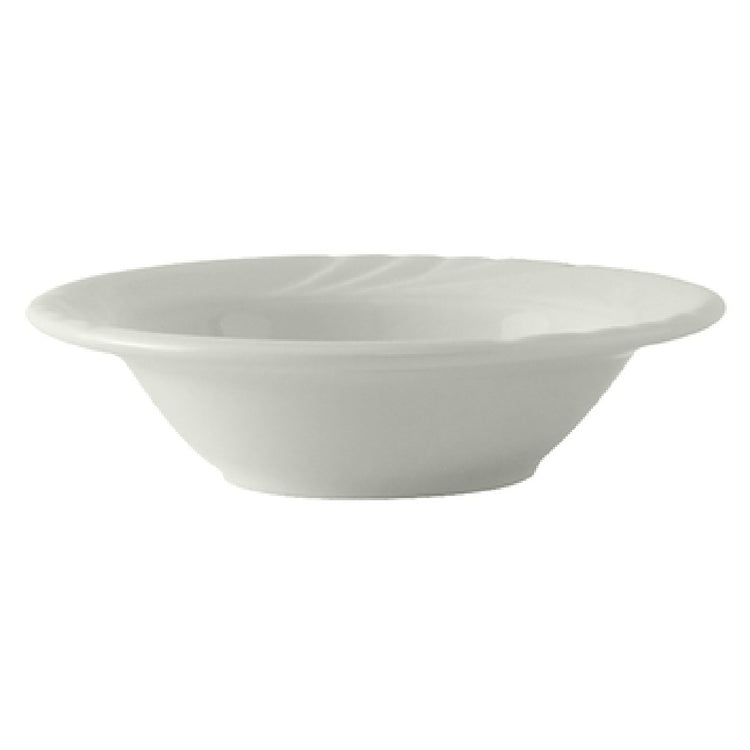 The Tuxton YPD-063 Grapefruit bowl is a versatile and durable dish designed to meet the needs of various segments within the food service industry, including healthcare and hospitality. This bowl has a capacity of 6-1/2 ounces and a diameter of 6-3/8 inches, making it well-suited for serving individual portions of grapefruit or similar-sized dishes. The bowl features an embossed design that adds a touch of elegance to its appearance. Constructed from fully vitrified porcelain, this bowl is both lead-free and robust, ensuring safety and longevity. It is microwave safe, allowing for easy reheating of contents, and can be conveniently cleaned in a dishwasher. Furthermore, its oven-proof nature provides versatility in food preparation and presentation. The Tuxton YPD-063 is part of the Sonoma collection and comes in a classic Porcelain White color, offering a neutral backdrop to highlight the vibrant colors of the food it holds. Each case is packed with 3 dozen bowls, accommodating larger establishments. The TuxCare® trademark guarantees high-quality craftsmanship and reliability, making this bowl a dependable choice for professional kitchens seeking functionality and style in their tableware.