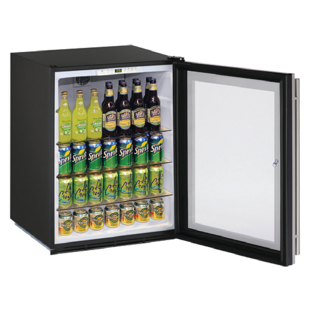 U-Line Corporation U-ADA24RGLS-13B ADA Series Undercounter Refrigerator is a highly efficient and compact refrigeration solution designed for various professional and personal environments. This unit features a rear mount self-contained refrigeration system, offering a substantial 5.4 cubic feet capacity that can accommodate up to 70 twelve-ounce bottles or 140 twelve-ounce cans, making it ideal for bars, restaurants, and residential use. The temperature range spans from 34°F to 45°F, providing optimal cooling conditions for a variety of beverages and perishables. A standout feature is its field reversible glass door with a secure lock, offering both convenience and security. Inside, the refrigerator is equipped with three adjustable glass shelves for flexible storage, complemented by energy-efficient LED lighting that ensures visibility. The exterior boasts a sleek stainless steel front panel, with contrasting black vinyl rear and sides, providing durability and aesthetic appeal. Adjustable legs allow for customization to fit various undercounter spaces. Operating on R600a refrigerant, this unit is energy-efficient, running on 115 volts with a 1.2-amp requirement, and is UL certified for safety. The U-ADA24RGLS-13B is particularly suited for settings where space, performance, and design converge, offering a reliable refrigeration solution.