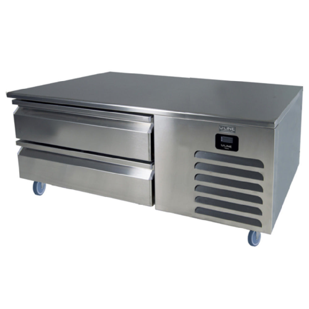 The U-Line Corporation UCFB560-SS61A (QUICK SHIP) U-Line Commercial Freezer Base is an advanced refrigeration solution tailored for industry professionals seeking efficient and reliable cold storage. This self-contained refrigeration unit features two spacious drawers that accommodate two 12-inch by 20-inch by 4-inch pans each, making it suitable for various commercial uses. With a temperature range of 14°F to -13°F, it ensures optimal preservation conditions for a wide array of products. Measuring 26 inches in height, 60 inches in width, and 32-1/2 inches in depth, this unit is designed to fit seamlessly into diverse kitchen environments. The freezer is equipped with an auto defrost function, simplifying maintenance and ensuring consistent performance. Operating on 115v/60/1-ph with 7.3 running amps, it includes an epoxy-coated and sealed evaporator for enhanced durability. The electronic digital temperature control with an alarm adds a layer of precision and security, guaranteeing peace of mind. Utilizing R452A refrigerant, the U-Line freezer base is engineered for efficiency and environmental responsibility. The inclusion of casters ensures easy mobility, allowing it to be conveniently positioned as needed. This freezer base is a strategic choice for foodservice operations demanding a blend of functionality, robustness, and mobility.
