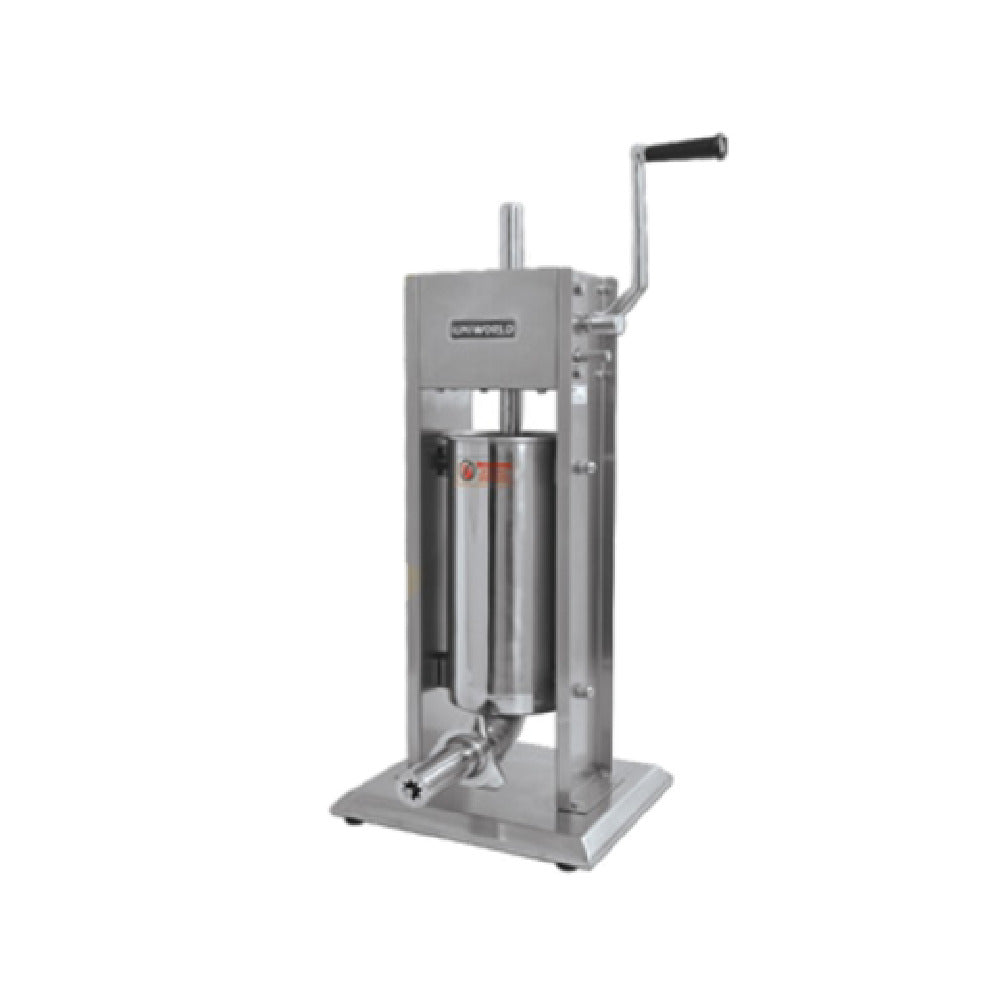 The Uniworld Food Service Equipment UCM-DL5N Churro Maker Deluxe - 10 lbs. Capacity is a specialized piece of equipment designed for efficient churro production, catering to diverse market segments in the food industry. This churro maker is engineered with a portable stainless steel cylinder and base plate, ensuring durability and ease of use in various settings, from small-scale food vendors to larger commercial kitchens. The device features a 2-gear system, providing versatility and control in the churro-making process, which can be particularly beneficial for establishments that require consistent output while maintaining product quality. Additionally, the UCM-DL5N includes two standard stainless steel nozzle adapters, offering options for creating churros of different shapes and sizes, thereby allowing businesses to tailor their offerings to specific customer preferences. With a 10 lbs. capacity, this churro maker is ideal for settings that demand both efficiency and quality in high-volume production, such as food stands, cafes, and restaurants. The combination of robust construction and practical features positions the Uniworld UCM-DL5N as a reliable solution for any establishment seeking to enhance its dessert menu with authentic, freshly-made churros.