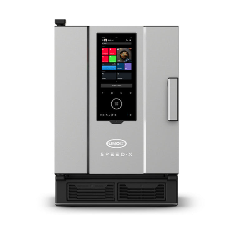 UNOX XAPA-0523-EXRS SPEED-X™ Electric Combi Speed Oven Offers A Combination Of Rapid Cooking By Blending The Power Of Steam With The Speed Of Microwaves. SPEED-X™ Is The First Ever Self-washing Combi Speed Opven. It Has A Capacity Of 10 GN2/3 Tr