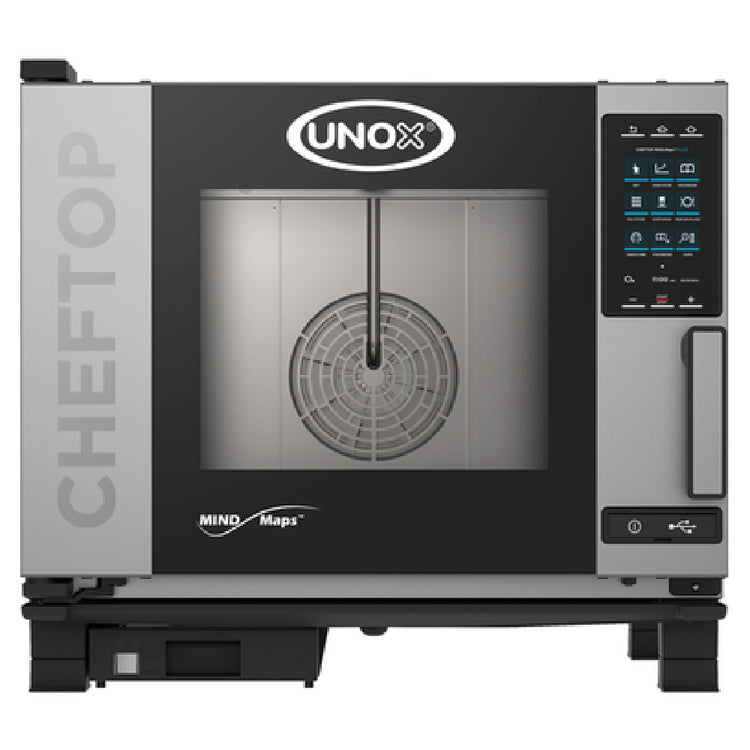 The UNOX XAVC-0511-GPRM_NAT ChefTop MIND.Maps™ Plus Combi Oven/Steam Oven is a versatile gas countertop appliance that seamlessly combines heat, hot air flow, and steam to create an adaptable cooking environment. This model features a capacity suitable for (5) 1/1 GN or (5) 12"x20" hotel size pans, making it ideal for various culinary applications. The innovative MIND.Maps™ technology enables programmable menu options, providing chefs with precision control over cooking processes. With a 2-11/16" shelf spacing and a robust glass door that opens from right to left, this oven ensures user-friendly operation. Constructed with a stainless steel interior and exterior, it offers durability and sleek design. Notably, the oven requires separate purchase of gas lines and mandates the use of UNOX brand casters with safety chains for safe and reliable operation. For enhanced data management, the oven includes WIFI/USB capabilities for seamless data transfer to HACCP software. With an energy consumption of 0.6kW, 5 amps, and operating on 120v/60/1-ph, the unit is ENERGY STAR® certified, emphasizing its energy efficiency. The UNOX ChefTop is cETLus and NSF certified, ensuring compliance with safety and sanitation standards, and serves as a valuable asset across diverse industry segments.