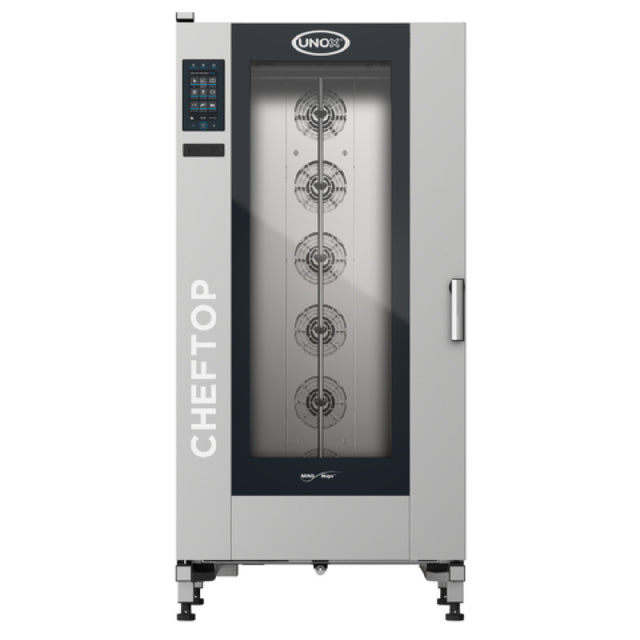 The UNOX XAVL-2021-DPRS ChefTop MIND.Maps™ Plus Combi Oven/Steam Oven is a powerful electric countertop oven that combines heat, hot air flow, and steam for versatile cooking solutions, catering to diverse culinary demands in professional kitchens. This floor model features a substantial capacity, accommodating either 20 full-size 18" x 26" sheet pans or 40 hotel-size pans, which highlights its adaptability for large-scale cooking operations. The oven integrates cutting-edge MIND.Maps™ technology, allowing for a programmable menu that enhances precision and efficiency. With a 3-5/16" shelf spacing, it ensures optimal cooking conditions. The unit is crafted with marine-grade stainless steel for both interior and exterior, ensuring durability and longevity. It operates at an impressive 53.7-71kW and requires a 208-240v/60/3-ph electrical connection. A glass door with right-to-left opening enhances usability, while the included XEVTL-2021 trolley supports up to 40 hotel-size pans, with adapter grids GRP521 available to convert for full-size sheet pans. The oven is NSF and cMETus certified, confirming its compliance with rigorous safety and sanitation standards. Additionally, it includes a water line connection feature, facilitating ease of use in fast-paced kitchen environments.