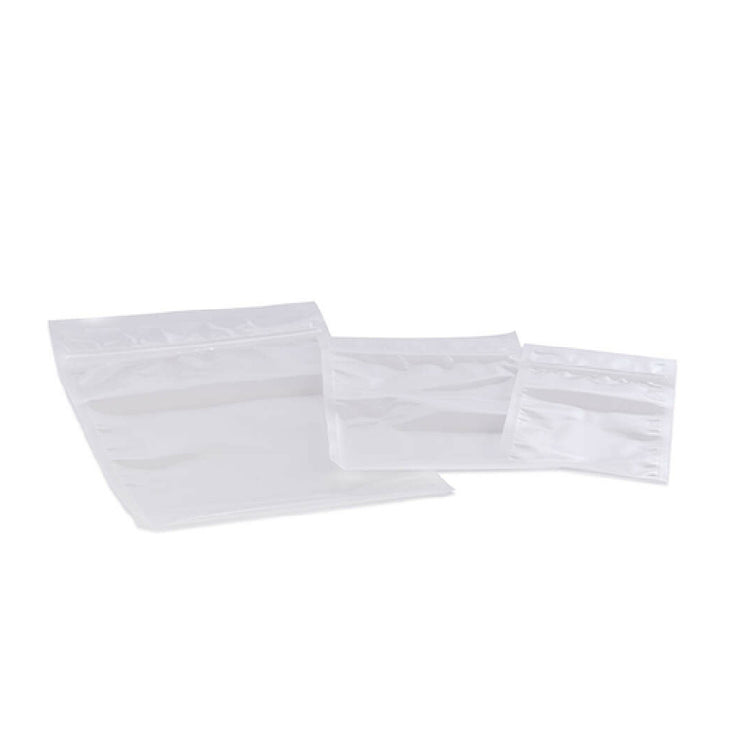 The VacMaster 50726 Zipper Vacuum Chamber Pouches - 12" x 14" 3-Mil (1000 per box) - are expertly engineered for airtight storage and preservation, catering to diverse industry needs. These pouches are specifically designed for use with vacuum chamber machines, ensuring optimal functionality and performance. Measuring 12 inches by 14 inches, they provide ample space for storing larger food items or multiple smaller items in one pouch, making them ideal for food service businesses, commercial kitchens, and food manufacturers. The 3-Mil thickness adds to their durability and puncture resistance, providing reliable protection against moisture, oxygen, and other environmental factors that can degrade food quality. The inclusion of a zipper closure offers a convenient resealing option, enhancing usability and efficiency for both large-scale operations and smaller enterprises focused on reducing food waste and maintaining freshness. With 1000 pouches per box, this product supports high-volume applications, ensuring businesses have a consistent supply to meet their storage requirements. The VacMaster 50726 Zipper Vacuum Chamber Pouches are a practical and efficient solution for food preservation, aligning with industry standards and providing exceptional value for preserving the integrity and quality of stored products across various market segments.