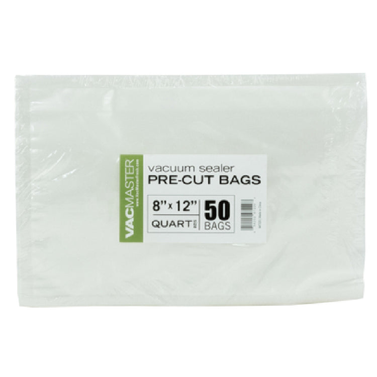VacMaster 947220 VacMaster™ Full Mesh Vacuum Seal Quart Bags - 8" X 12" are crafted with patented mesh technology, ensuring superior sealing capabilities that cater to various industry needs. These high-gloss bags are specifically designed to be BPA-free and FDA approved, highlighting their commitment to safety and quality. Measuring 8 inches by 12 inches, the bags offer ample space for sealing a variety of products, providing versatility for different market segments, from food preservation in home kitchens to packaging solutions in commercial environments. Their compatibility with any external suction sealer or chamber vacuum sealer enhances their appeal across diverse user bases, ensuring that they can be seamlessly integrated into existing systems. The full mesh design of the VacMaster 947220 ensures optimal air displacement during the vacuum sealing process, which not only extends the shelf life of products but also maintains their freshness and quality. This innovative feature, coupled with the bags' durability, makes them a dependable choice for businesses looking to improve operational efficiency and product longevity. The VacMaster 947220 bags exemplify a blend of advanced technology and practical functionality, making them an indispensable tool for professionals seeking reliability and performance in vacuum sealing applications.