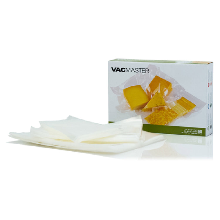 The VacMaster 948300 VacMaster™ Full Mesh Vacuum Seal Pint Quart Gallon Bag Assortment is a versatile solution for vacuum-sealing needs across various market segments, including food service and home use. This product includes a total of 60 bags, with 20 bags each in pint, quart, and gallon sizes, equipped with patented mesh technology that ensures superior air removal and tight seals. These high-gloss bags are BPA-free and FDA approved, ensuring they are safe for storing food items. The bags are compatible with any external suction sealer or chamber vacuum sealers, providing flexibility and convenience for different sealing systems. The assortment's diverse size range makes it suitable for sealing portions of different volumes, catering to both small-scale and large-scale storage requirements. The VacMaster 948300 offers a reliable and efficient storage solution for preserving food freshness, enhancing organizational efficiency within kitchens or food service operations. With its robust construction and advanced sealing technology, this vacuum seal bag assortment supports optimal storage conditions, making it a valuable tool for maintaining the quality and longevity of stored goods.