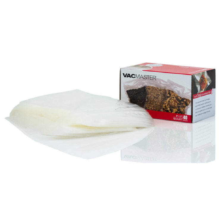 The VacMaster 948502 VacMaster™ Full Mesh Zipper Vacuum Seal Quart Bags 8" X 12" are designed to meet the diverse needs of both professional and home users seeking reliable food storage solutions. These vacuum seal quart bags measure 8 inches by 12 inches, providing ample space for preserving a variety of foods. A standout feature is the patented mesh technology, which enhances the bag's sealing performance by ensuring maximum air removal and optimal vacuum sealing. The bags boast a high-gloss finish, which not only offers an attractive appearance but also signifies quality and durability. Importantly, these bags are BPA-free and FDA approved, addressing health and safety concerns for consumers prioritizing chemical-free food storage options. Compatibility is another key advantage, as these bags can be used with any external suction sealer or chamber vacuum sealers. This flexibility makes them a versatile choice for different segment markets within the food preservation industry, including culinary professionals, food enthusiasts, and households aiming for longer shelf life of stored foods. Sold in a box of 40, these VacMaster bags provide an efficient and cost-effective solution for those in need of high-quality vacuum sealing performance.