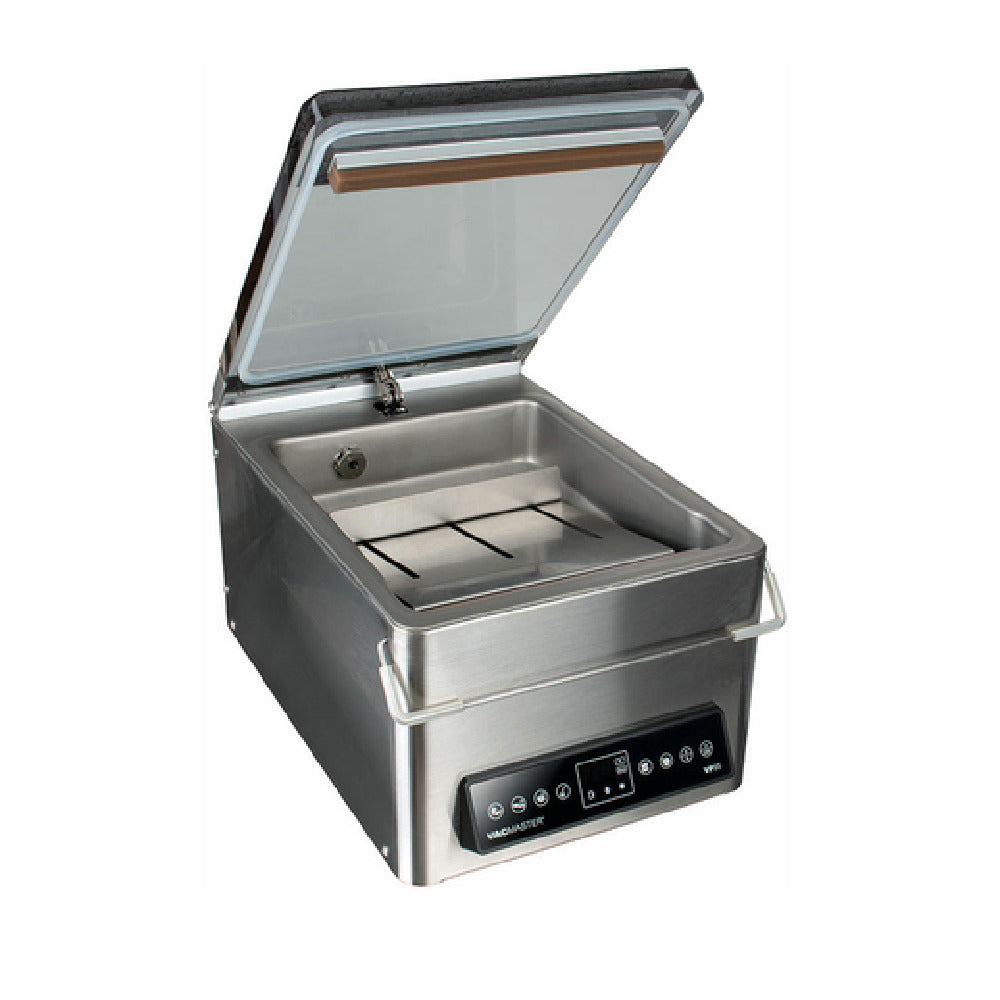 The VacMaster VP95 VacMaster™ Chamber Vacuum Sealer is a compact and efficient countertop unit, measuring 11" W x 16" D x 9" H, designed for professional and home use. Featuring a 9.25" removable seal bar with a double seal wire, it ensures airtight sealing, essential for preserving food freshness. The sealer includes a 9-1/2" W x 10-1/2" D x 3-1/4" H chamber, accommodating a range of packaging sizes. Its digital control panel allows for precise operation, while the accessory hose port offers versatility with vacuum storage containers. The removable internal incline plate facilitates easy cleaning, enhancing convenience. With a cycle time ranging from 20 to 60 seconds, it balances speed and efficiency. The durable transparent lid and stainless steel body underscore its robust construction. Powered by a single piston oil pump, the VP95 is reliable and efficient, operating at 110v/60/1-ph with a 4.0 amp requirement. A maintenance kit is included, supporting prolonged operational life. This vacuum sealer is ideal for culinary professionals and household kitchens, offering advanced sealing technology and convenience in a compact design.