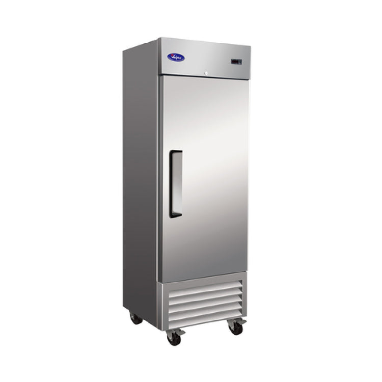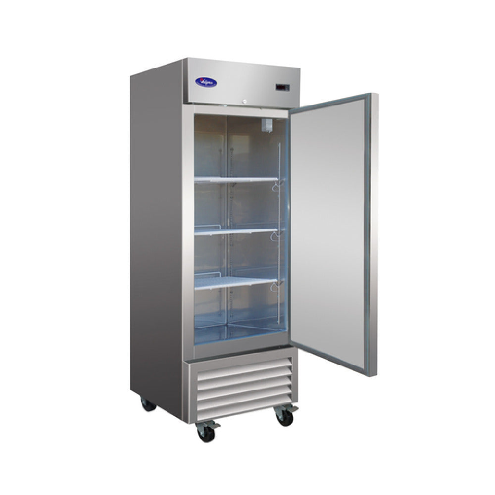 The Valpro VP19F-HC Freezer Reach-in One-section is a versatile and efficient solution for commercial refrigeration needs, ideal for various industries including foodservice and retail. With a compact 27-inch width and a substantial 19-cubic foot capacity, it offers ample storage while maintaining a manageable footprint. The self-contained bottom-mounted refrigeration system ensures consistent cooling performance. This freezer features a digital thermostat equipped with an LED display, providing precise temperature control. The interior is illuminated by energy-efficient LED lighting and includes three adjustable epoxy-coated wire shelves, facilitating organized storage. The solid self-closing door, which is lockable and field reversible, enhances security and convenience. Constructed with a durable 430 stainless steel exterior and a 304 stainless steel interior, this unit is both robust and easy to maintain. It is equipped with four 4-inch casters, two of which lock for stability, allowing for easy mobility and placement. Powered by a 1/2 HP motor and operating on 115V/60/1-ph, the freezer draws 5.0 amps, featuring a NEMA 5-15P plug for compatibility with standard outlets. The Valpro VP19F-HC is ETL and ETL-Sanitation certified, ensuring it meets high safety and sanitation standards, making it an excellent choice for professional environments.