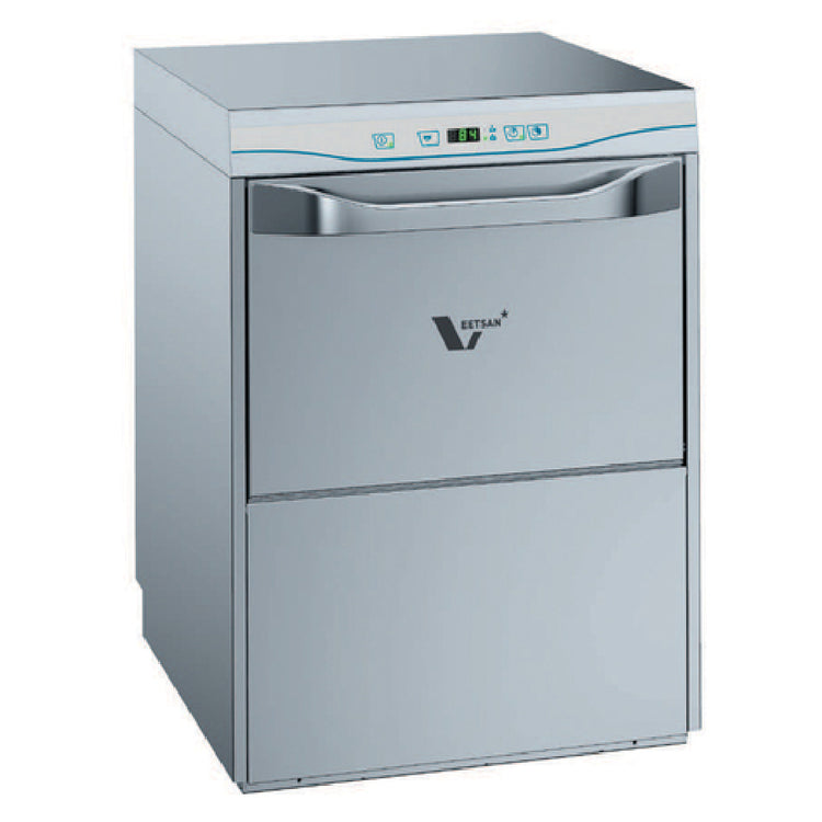 Veetsan 502737 (VLAI1G4) Undercounter Double Skin Dishwasher With Drain Pump is a precision-engineered appliance designed for commercial kitchens that demand efficiency and reliability. This advanced dishwasher features a robust undercounter design that optimizes space utilization while maintaining high-performance standards. The double skin construction enhances insulation, promoting energy efficiency and noise reduction. Equipped with a drain pump, detergent, and rinse aid dispensers, this model ensures seamless operation with plug-in convenience. Capable of processing up to 30 racks per hour, it caters to high-volume environments, making it suitable for bustling restaurants, cafes, and catering facilities. The machine operates on a 240V/60Hz power supply, aligning with industry standards for electrical compatibility. The Veetsan 502737 is uniquely positioned to meet the diverse demands of the food service industry, providing reliable cleaning power in a compact form. Its innovative features and technical specifications make it an invaluable asset for businesses seeking to enhance operational efficiency and maintain high hygiene standards in their dishwashing processes.