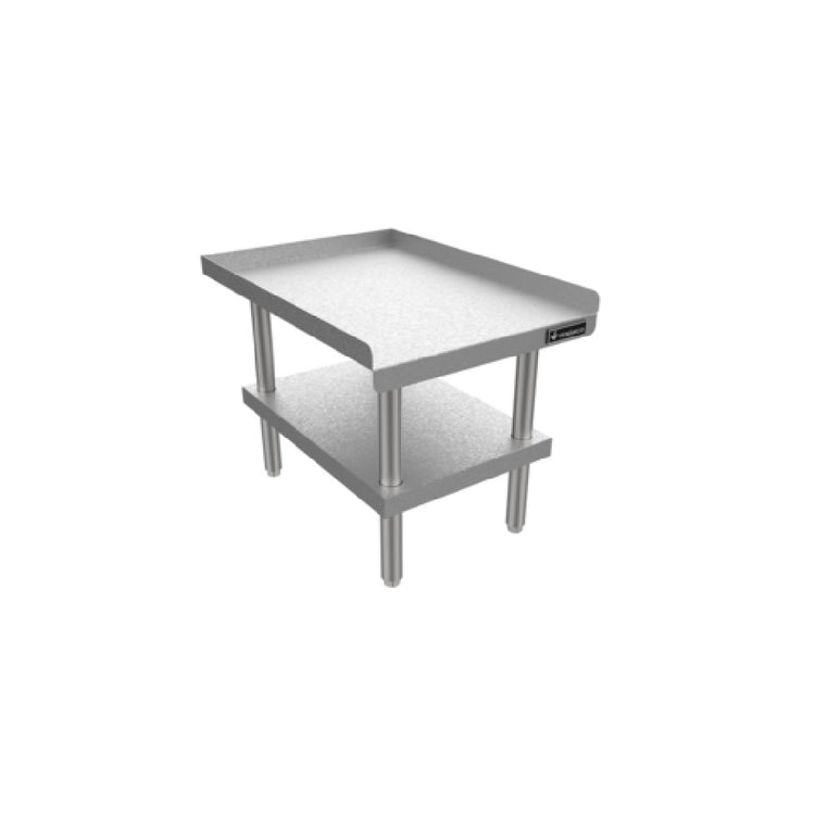 The Venancio EST24 Equipment Stand 24"W with Tray is meticulously designed to cater to various culinary and industrial segments requiring reliable support for their equipment. With a compact width of 24 inches, this stand is a practical solution for kitchens and workspaces where space optimization is crucial. The inclusion of a tray and an undershelf maximizes storage capabilities, allowing users to efficiently organize essential tools and materials within easy reach. Crafted from robust stainless steel, the stand ensures durability and resistance to corrosion, making it a long-lasting addition to any setting. The stand is equipped with 6-inch adjustable legs, providing flexibility in height to accommodate uneven floors or specific workflow requirements. This feature is particularly beneficial in maintaining stability and ergonomic efficiency in a dynamic workspace. The Venancio EST24 is an essential component for businesses aiming to enhance their operational efficiency, offering both functionality and resilience in challenging environments. Its straightforward design and reliable construction make it a preferred choice for those seeking to streamline operations without compromising on quality or durability.