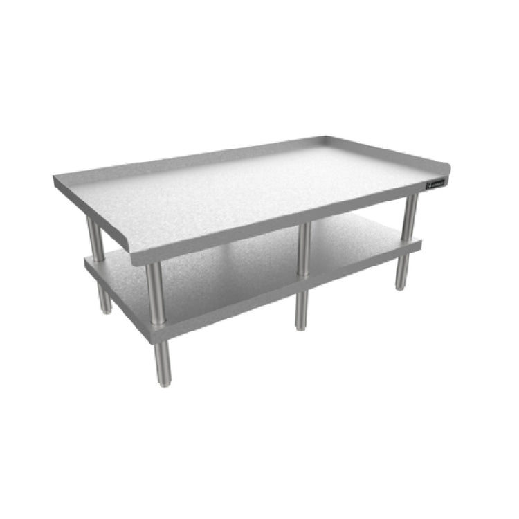 The Venancio EST60 Equipment Stand 60"W With Tray is a versatile addition to any professional kitchen, designed to support a wide range of equipment needs with precision and durability. This equipment stand features a generous 60-inch width, offering ample space to hold various kitchen appliances securely. Constructed from high-quality stainless steel, it ensures long-lasting durability and resistance to corrosion, making it ideal for the demanding environments typical in food service operations. The inclusion of a tray and a practical undershelf maximizes storage and organizational efficiency, allowing for easy access to essential kitchen tools and ingredients. Its 6-inch adjustable legs provide flexibility in height, helping to accommodate different user preferences and workspace requirements. The Venancio EST60 is specifically engineered to meet the diverse needs of chefs and kitchen staff in restaurants, bakeries, and catering services, offering a reliable foundation for heavy equipment. Its robust construction and thoughtful features make it an indispensable resource for enhancing the functionality and workflow of any commercial kitchen setting.