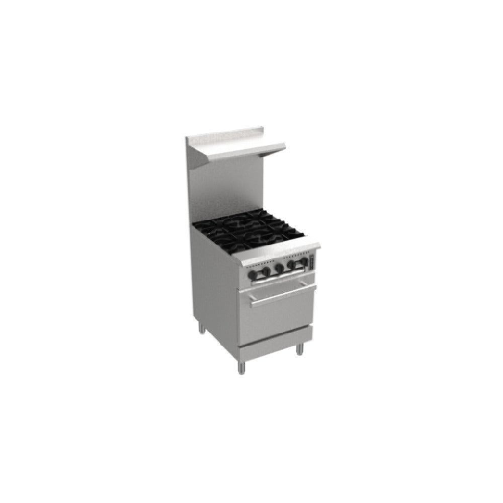 The Venancio PRO24G-ST _NAT Prime Restaurant Range Gas 24"W is a robust and efficient cooking solution tailored for professional kitchens. This unit features four open burners with sturdy cast iron top grates, ensuring durability and optimal heat distribution. Each burner is equipped with independent manual control valves, allowing precise temperature management crucial for complex culinary operations. The range includes a standard oven with a snap action thermostat, housed within a double-sided enamel oven cavity. This design promotes even cooking while simplifying cleaning. Inside the oven, you'll find one rack with three adjustable shelf positions for versatile baking needs. The unit is complemented by a 25"H back guard with an over shelf, providing additional storage and workspace. The front rail and removable crumb tray, along with stainless steel construction on the front, sides, and adjustable 6" legs, underscore the unit's durability and ease of maintenance. The oven door features a counterweight balance for smooth operation. With a powerful output of 130,000 BTU, this range is UL EPH Classified and cULus certified, making it a reliable choice for restaurants requiring a blend of performance and reliability. Its compact 24"W design makes it ideal for various kitchen spaces, enhancing both flexibility and functionality.