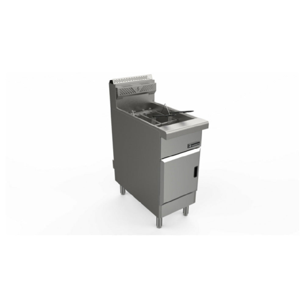 The Venancio RFB50_LP Fryer Gas Freestanding is a high-performance kitchen appliance engineered for precise frying applications, ideal for commercial kitchens seeking reliability and efficiency. This gas-powered fryer boasts a compact 16" width, yet offers an impressive 50 lb. oil capacity, making it suitable for high-volume frying tasks. Equipped with thermostatic control, it maintains a consistent temperature range of 200°F to 400°F, ensuring optimal frying conditions. Safety is prioritized with a self-reset high temperature limiting device and a safety valve. The fryer features four robust cast iron burners with standby pilots, delivering a powerful 120,000 BTU output. It includes a full pot fry tray, two nickel-plated wire mesh baskets, and a crumb screen for versatile frying and easy maintenance. The unit's construction includes a fully welded frame with a stainless steel front, door, sides, basket hanger, and fry pot, ensuring durability and longevity. A 1-1/4" full port drain valve facilitates efficient oil drainage, while 6" adjustable polished chrome steel legs provide stability and adaptability to different kitchen setups. The Venancio RFB50_LP Fryer is cULus and UL EPH Classified, meeting rigorous safety and sanitation standards for professional kitchens.
