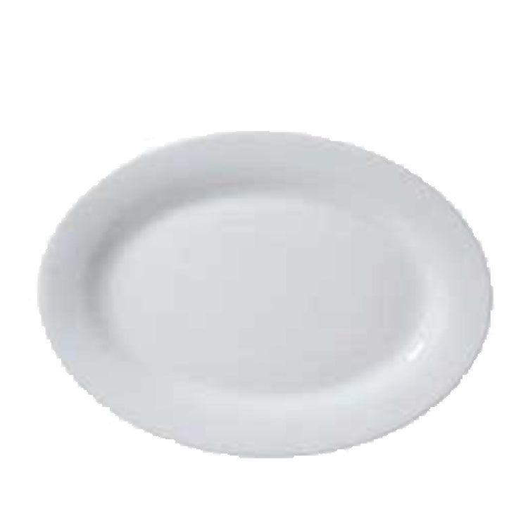 The Vertex China ARG-28 Platter 15-1/2" Oval is a distinctive serving piece crafted for versatility and elegance, fitting seamlessly into various food service environments. Measuring 15-1/2 inches, this oval platter is a part of the Universal Market Buffet Collection, known for its functionality and aesthetic appeal. The platter is designed with a rolled edge, highlighting its sophisticated form while providing durability and resistance to chipping, making it ideal for frequent use in high-traffic environments. Rendered in a bright white hue, the platter enhances food presentation, allowing the vibrant colors of the culinary creations to stand out. Packed by 1 dozen, it is well-suited for large-scale dining operations, from bustling buffets to intimate catered events. The Vertex China ARG-28 Platter caters to diverse market segments, including restaurants, hotels, and catering businesses, providing a reliable and stylish solution for serving needs. This platter's robust design not only complements an array of dining settings but also ensures that it withstands the demands of daily use, thus delivering a compelling value proposition for establishments seeking both quality and style in their tableware selections.