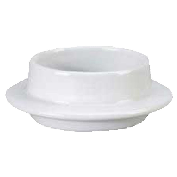 The Vertex China ARG-3-B Butter Bowl 3 Oz. 3-1/2" Dia. stands out as a versatile component of the Signature Collection, catering to various industry segments with its detailed design and functionality. This butter bowl, with a capacity of 3 ounces and a diameter of 3-1/2 inches, is crafted to accommodate precise serving needs, making it ideal for restaurants, hotels, and catering services that demand both style and efficiency. Its round shape and deep structure are complemented by high-pitched rims, ensuring the contents remain secure. The rolled edge adds a touch of sophistication while enhancing durability, a key feature for high-traffic dining environments. The bright white color is not only visually appealing but also provides a universal aesthetic that easily blends with diverse table settings and decor themes. The Vertex China ARG-3-B Butter Bowl is packed by 4 dozen per case, a practical choice for bulk procurement in commercial operations. Designed to meet the rigorous demands of professional settings, this butter bowl embodies the perfect balance of elegance and functionality, making it an indispensable item for the food service industry.