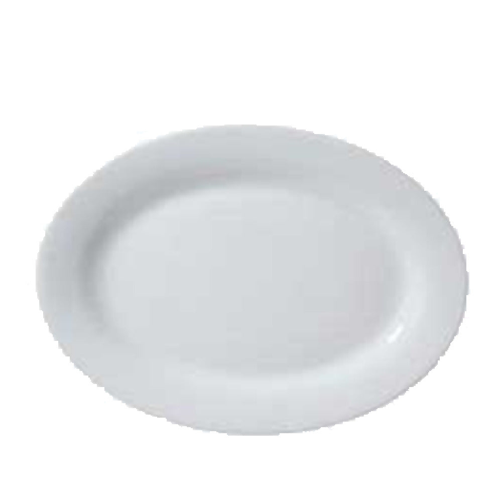 The Vertex China ARG-31 Platter 22" Oval is a meticulously designed serving piece that balances elegance with functionality. This platter features a generous 22-inch oval shape, providing ample space for presenting a variety of dishes attractively. The platter's rolled edge not only adds a touch of sophistication but also enhances durability, making it a practical choice for high-traffic environments. Crafted in a bright white color, it seamlessly complements any table setting, adding a clean and modern aesthetic. Part of the Universal Market Buffet Collection, the Vertex China ARG-31 is versatile enough to be a staple in both casual and upscale dining establishments. This platter is exclusively packaged six per case, ensuring that businesses can efficiently maintain their inventory. Its design caters to the diverse needs of the hospitality industry, from large-scale catering services to intimate restaurant settings, highlighting its adaptability across different service styles. The Vertex China ARG-31 Platter's quality and design make it an essential tool for professionals seeking reliable and stylish serveware that stands up to the demands of everyday use. Whether for buffets, banquets, or fine dining, this platter helps create a memorable dining experience with its blend of practicality and elegance.