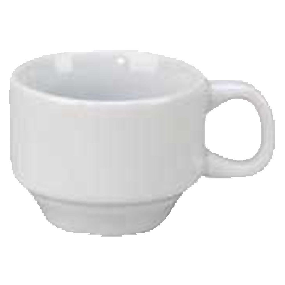 The Vertex China ARG-50 A.D. Cup 3 Oz. 2-3/8" is a meticulously designed piece from the Universal, Argyle Collection, tailored to meet the diverse requirements of the food service industry. This compact yet functional cup, with a holding capacity of 3 ounces, is crafted from high-quality porcelain, ensuring durability and a bright white finish that complements any dining setting. Its dimensions of 2-3/8" offer a snug and easy-to-hold size, enhanced by an ergonomically crafted handle that provides a comfortable grip for users. A notable feature of the ARG-50 is its stackable design, which is particularly advantageous for businesses aiming to maximize storage efficiency. The cup's rolled edge not only enhances its aesthetic appeal but also contributes to its chip-resistant property, ensuring longevity in high-traffic environments. Specifically designed to fit ARG-36 saucers, this cup is available in cases packed by 3 dozen, making it an ideal choice for establishments ranging from bustling cafes to formal dining settings where consistency and style are key. The Vertex China ARG-50 A.D. Cup is a testament to fine craftsmanship and practical design, fulfilling the needs of various market segments with its blend of style, functionality, and durability.