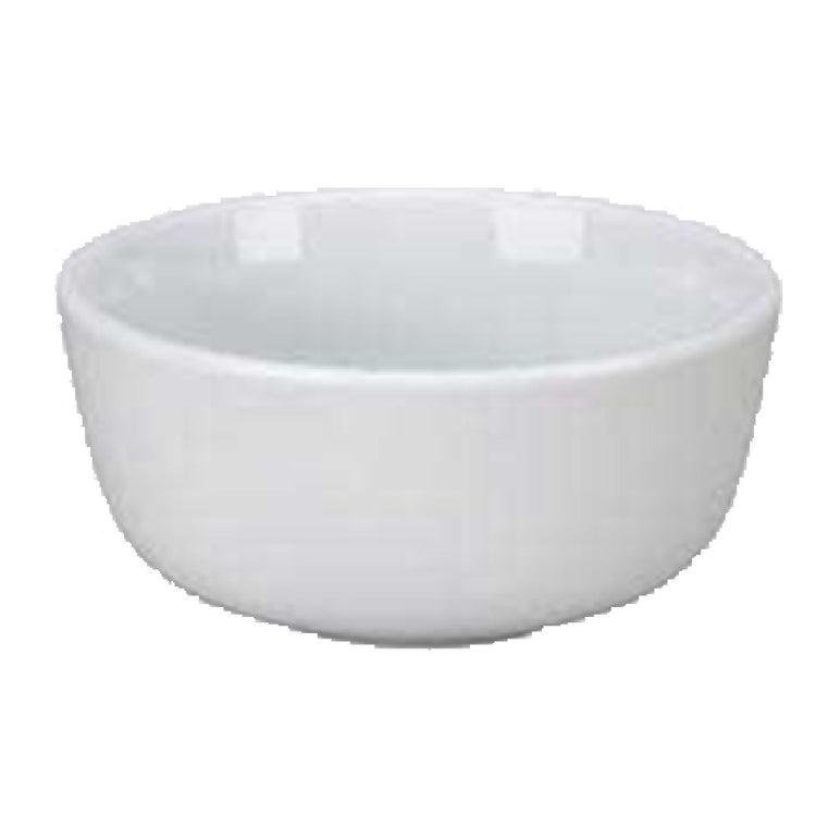 The Vertex China ARG-95 Jung Bowl 9-1/2 Oz. 4-1/2" Dia. is a meticulously designed piece from the Universal, Market Buffet Collection, Argyle. This round bowl, with a capacity of 9-1/2 ounces, is expertly crafted with a bright white finish that creates a clean and elegant presentation, enhancing its appeal in any dining setting. Its 4-1/2 inch diameter is ideal for a variety of culinary applications, making it versatile for different cuisine styles and service environments. The rolled edge design not only adds to its aesthetic charm but also contributes to its durability, ensuring longevity in both high-volume restaurants and intimate dining contexts. Packed by three dozen per case, this bowl is a practical solution for establishments seeking to maintain a uniform and professional look across their crockery. The Vertex China ARG-95 Jung Bowl's adaptability makes it a valuable asset for restaurants, hotels, and catering services alike, where its combination of style, capacity, and durability meets the diverse needs of the industry.