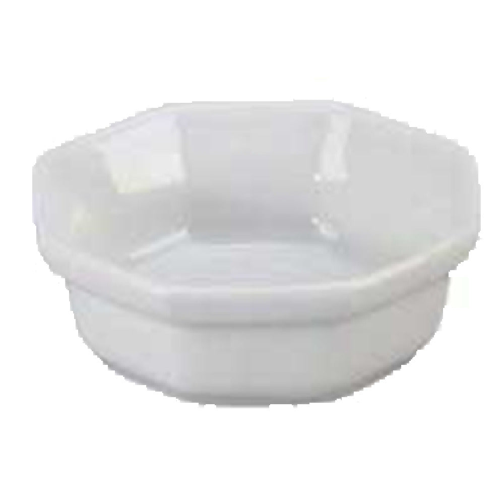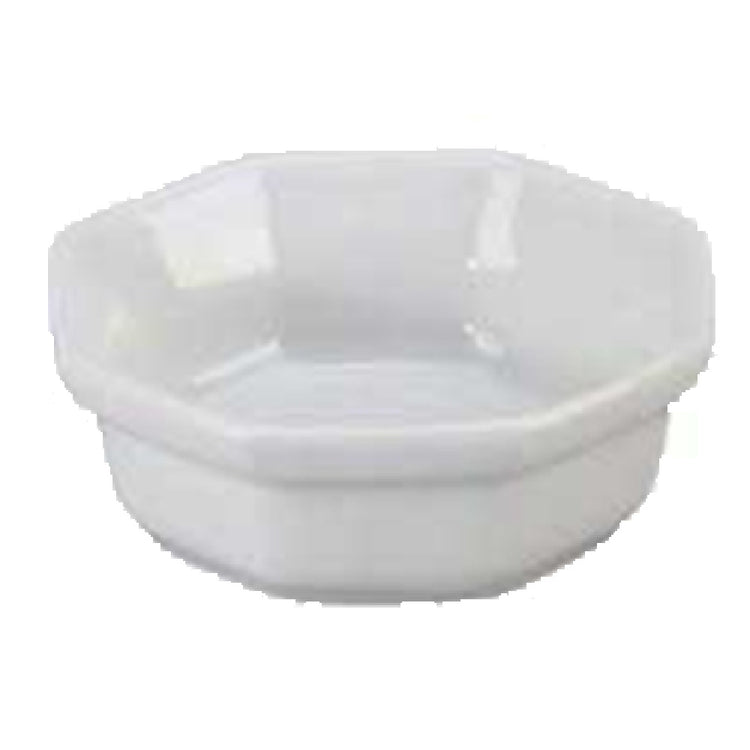 The Vertex China ARG-OD2 Dish is a versatile serving piece designed with precision for various dining settings. With a capacity of 1-1/2 oz., it perfectly caters to individual servings of sauces, condiments, or small appetizers. The dish measures 2-5/8 inches in diameter and stands 1 inch high, allowing it to effortlessly fit into diverse table settings. Its octagonal shape, paired with deep, high-pitched rims, offers a modern and sophisticated aesthetic that enhances presentation while maintaining practicality by preventing spills. The rolled edge adds strength and durability, ensuring longevity in both commercial and residential use. Rendered in bright white, this dish seamlessly integrates into the Universal Signature Collection, making it an ideal choice for those seeking consistency in their dinnerware. Packed by 4 dozen per case, the Vertex China ARG-OD2 Dish is a cost-effective solution for restaurants, caterers, and hotels seeking to enhance their service with elegant and durable dishware. Its sleek design and functional build mark it as a staple for any establishment striving to deliver a refined dining experience.