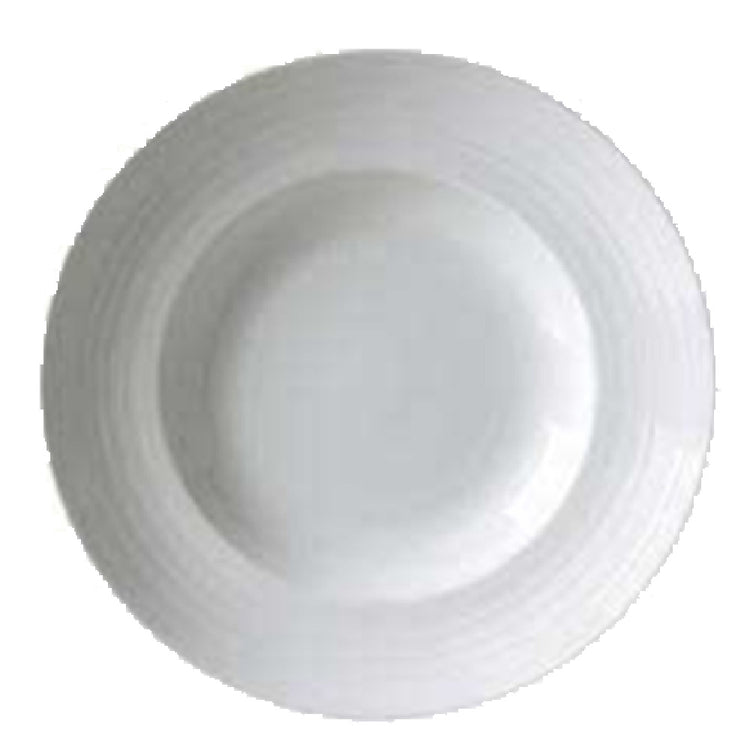 The Vertex China CB-23 Pasta Bowl - 20 Oz. 12" Dia. is a meticulously crafted porcelain bowl, designed to elevate culinary presentation across various dining settings. This round, deep bowl features an elegant rim and is part of the prestigious Premium Euro Collection, making it a standout choice for fine dining establishments and casual eateries alike. With a capacity of 20 ounces, it is ideally suited for serving generous portions of pasta, salads, or soups, catering to the diverse needs of the hospitality industry. The bowl's embossed design and bright white finish provide a sophisticated backdrop that enhances the visual appeal of any dish. Its polished foot adds stability and a touch of refinement to the overall design. Measuring 12 inches in diameter, the Vertex China CB-23 offers ample space for creative plating, accommodating the artistic demands of gourmet chefs. The Crystal Bay line's commitment to quality ensures that this porcelain bowl is not only aesthetically pleasing but also durable enough for continuous use in high-volume environments. Packed by the dozen, it provides a practical solution for restaurants, hotels, and catering services seeking to maintain a consistent and elegant table setting.