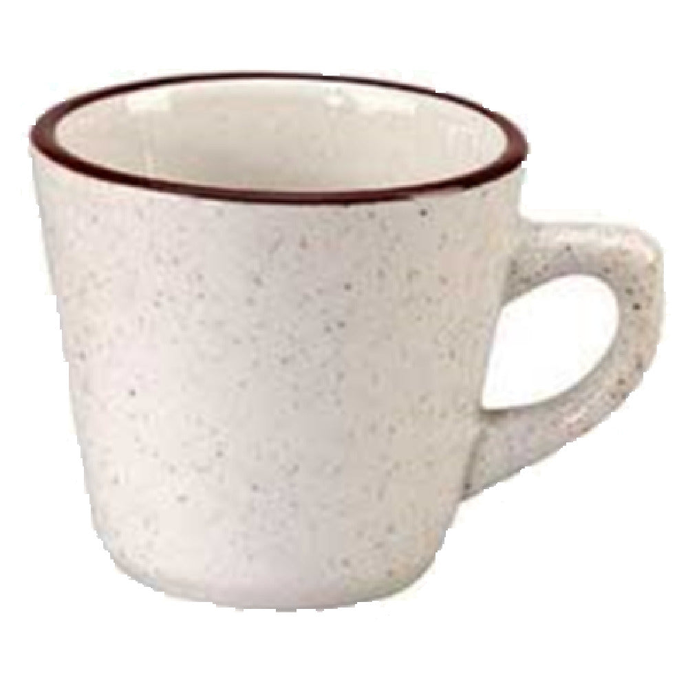 The Vertex China CRV-1 Cup 7 Oz. 3-1/4" is a meticulously crafted piece of vitrified china, renowned for its durability and elegance. This cup, part of the esteemed Caravan Collection, showcases a unique brown speckled design with a double band, embodying both style and functionality. With a capacity of 7 ounces and a height of 3-1/4 inches, it is perfectly tailored for serving a variety of hot beverages, making it a versatile addition to any dining establishment. The cup's ergonomic handle enhances user comfort, while its microwave and dishwasher-safe properties ensure practicality in fast-paced environments. Designed to fit seamlessly with the CRV-2 model, this cup exemplifies the 'Better Values' initiative by Vertex China, offering quality and reliability in every use. Ideal for cafes, restaurants, and hotels, its durable vitrified construction promises longevity, even with frequent use. Sold in bulk, packed by 3 dozen per case, the Vertex China CRV-1 Cup meets the needs of high-volume service industries, providing a cost-effective solution without compromising on quality or style. This cup is a testament to Vertex China's commitment to excellence, offering a perfect blend of aesthetics and practicality for the modern hospitality sector.