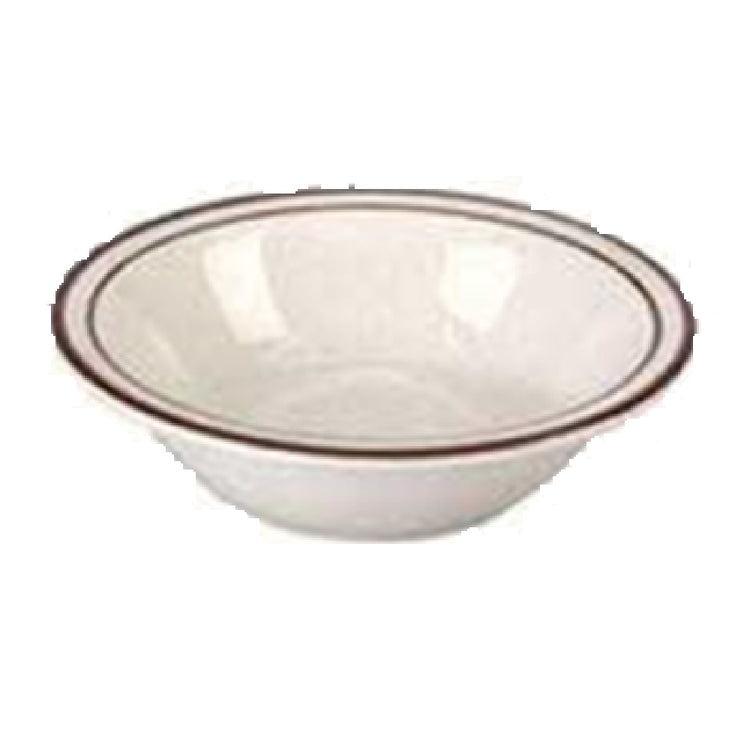 The Vertex China CRV-10 Grapefruit Bowl is a round dish with a volume of 10-1/2 oz. and a diameter of 6-3/8 inches, tailored for diverse dining establishments seeking durable and stylish tableware. As part of the Better Values Caravan Collection, this bowl is constructed from vitrified china, ensuring increased strength and reduced porosity, making it suitable for frequent use in both commercial and residential settings. The brown speckled design with a distinctive double band adds a touch of elegance to any table setting, appealing to both rustic and contemporary aesthetics. Its microwave and dishwasher safe features provide practicality and convenience for busy kitchens, ensuring quick service and effortless cleaning. With packaging at 3 dozen per case, the Vertex China CRV-10 Grapefruit Bowl is an excellent choice for bulk purchasing, significantly benefiting restaurants, hotels, and catering services that require a reliable and cost-effective solution for serving dishes. Whether used for breakfast services, dessert presentations, or more, this bowl's robust design and aesthetic versatility make it a valuable addition to any culinary enterprise's inventory, balancing both form and function in a single package.