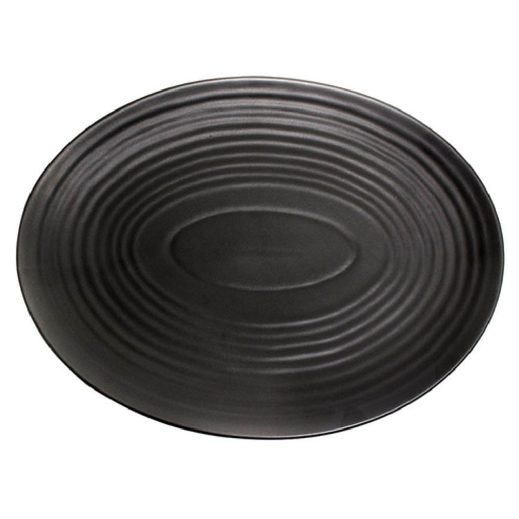 The Vertex China E-14-O Platter 13-1/4" Oval is a premium serving solution, meticulously designed to enhance dining presentations across various hospitality sectors. This platter features a coupe design with a polished foot that adds a touch of elegance and stability to its structure. The subtle embossing on its surface is a testament to its refined craftsmanship, perfect for upscale dining environments. Measuring 13-1/4 inches, this oval-shaped platter provides ample space for a diverse range of culinary displays, making it versatile for both individual servings and shared dishes. The Onyx matte black finish accentuates its modern aesthetic, blending seamlessly with contemporary table settings. Crafted as part of the Organics Elements collection, the platter is available in packaging by the dozen, catering to the demands of high-volume establishments. Its durable construction ensures it withstands the rigors of frequent use, while its chic design elevates the visual appeal of any dish it holds. As a favored choice among premium dining venues, the Vertex China E-14-O Platter combines functional design with artistic elegance, delivering an exceptional dining experience that aligns with the high standards of the foodservice industry.